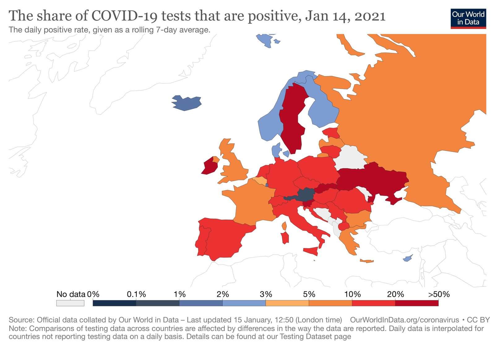 Негативним фактором у розвитку коронавірусної інфекції в Україні є найвищий відсоток позитивних ПЛР-тестів серед усіх країн Європи - 26.8%, що у свою чергу не дозволяє говорити про спад розвитку епідемії і підтверджує недостатність обсягів тестування. Для порівняння, у сусідній Польщі - 17.3%, Німеччині - 12.8%, Великобританії - 9%.