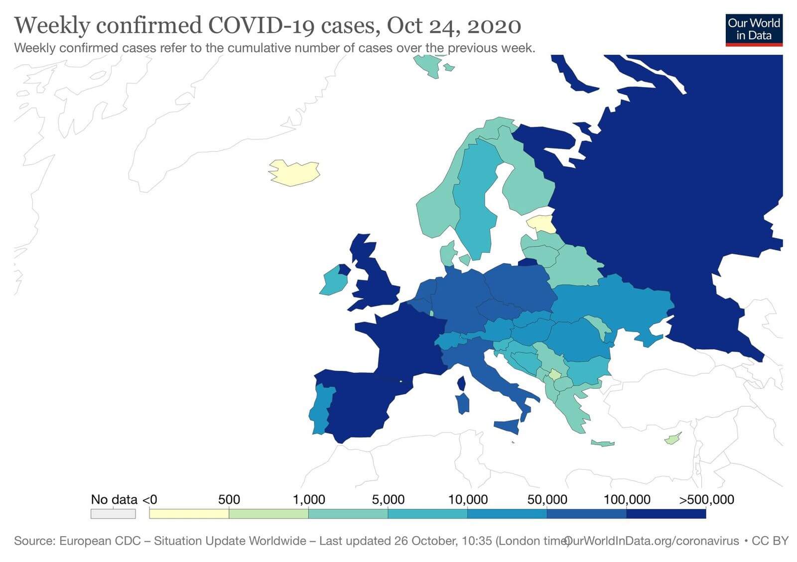 За останній тиждень, в порівнянні із минулим, суттєво погіршилася ситуація у Франції (237 тис. нових випадків), Великобританії (150 тис. нових випадків), Росії (114 тис. нових випадків) та Іспанії (100 тис. нових випадків). В Україні відзвітовано про 40 тис. нових випадків.