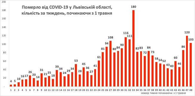 Також різко зростає смертність, яка за останній тиждень сягнула уже 120 осіб, що практично у півтора рази більше за минулий тиждень та у 3 рази за попередній щодо минулого тиждень.