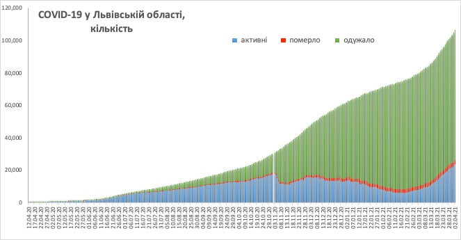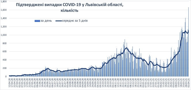 Аналіз ситуації щодо COVID-19 на Львівщині станом на 2 квітня 2021 року