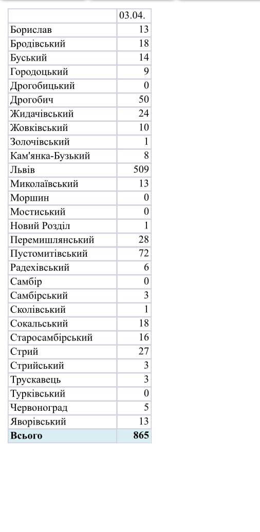 На Львівщині зафіксовано 865 нових випадків захворювання на коронавірус
