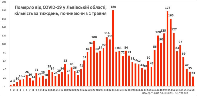 Зменшення очевидне і щодо смертельних випадків: так, за тиждень від коронавірусної інфекції померло 23 особи, і це практично рівень смертності, який був на початку епідемії.