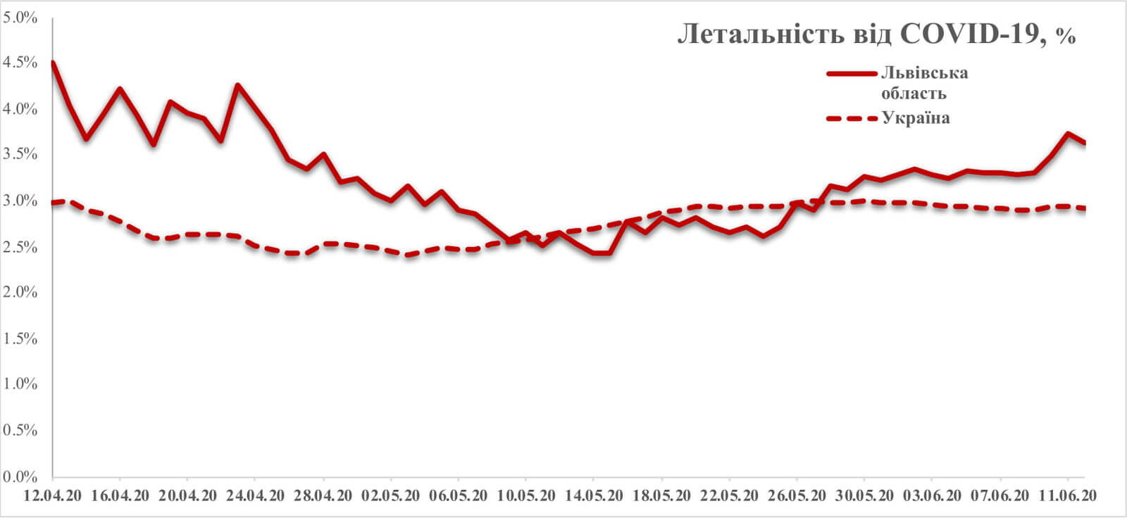 Летальність від COVID-19 у Львівській області станом на 12 червня.