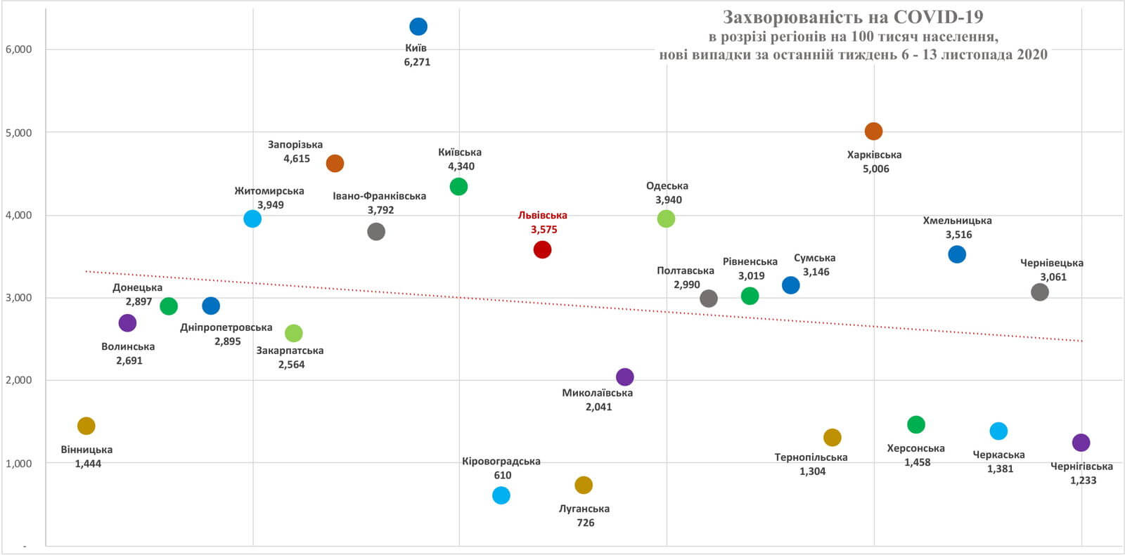 Аналіз ситуації щодо COVID-19 на Львівщині станом на 13 листопада 2020 року