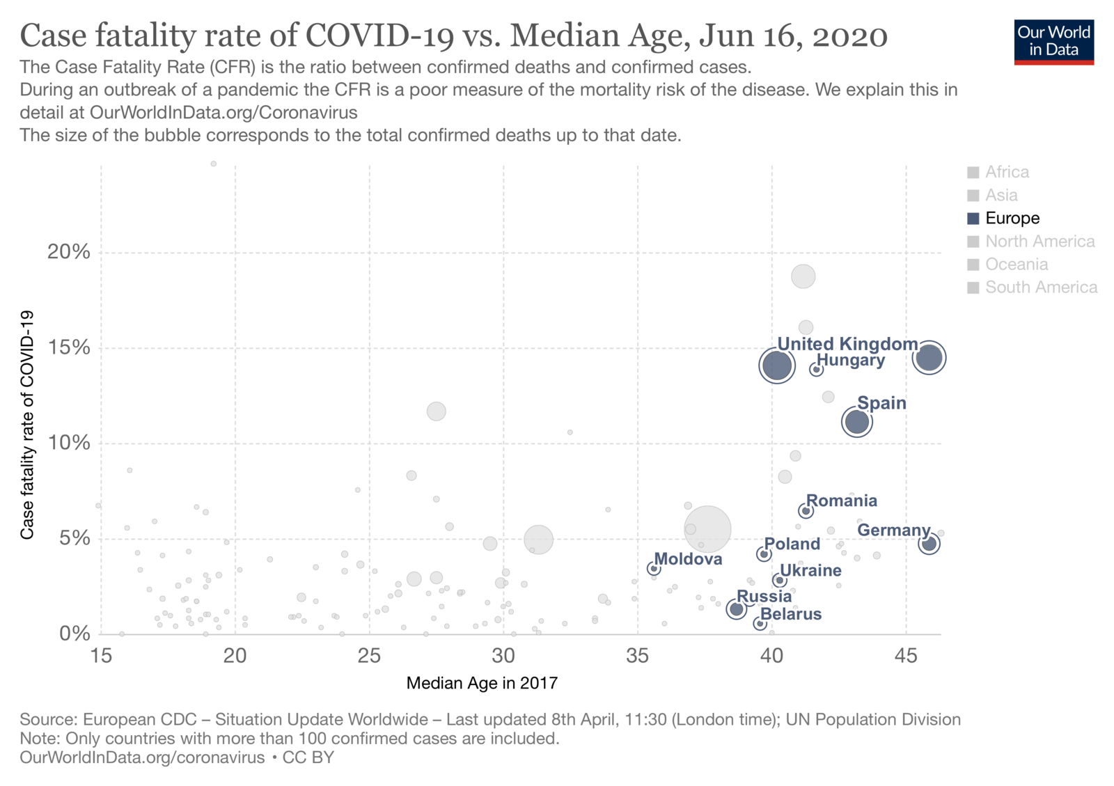 Смертність від COVID-19 у відповідності з середнім віком уражених.