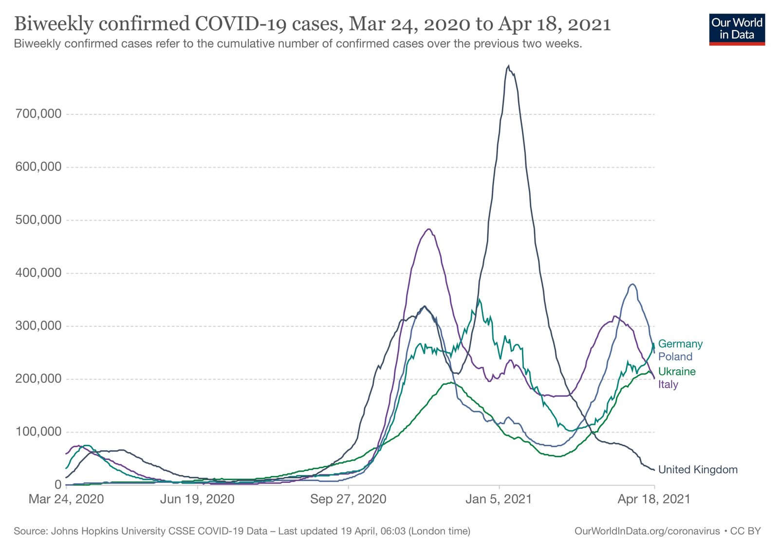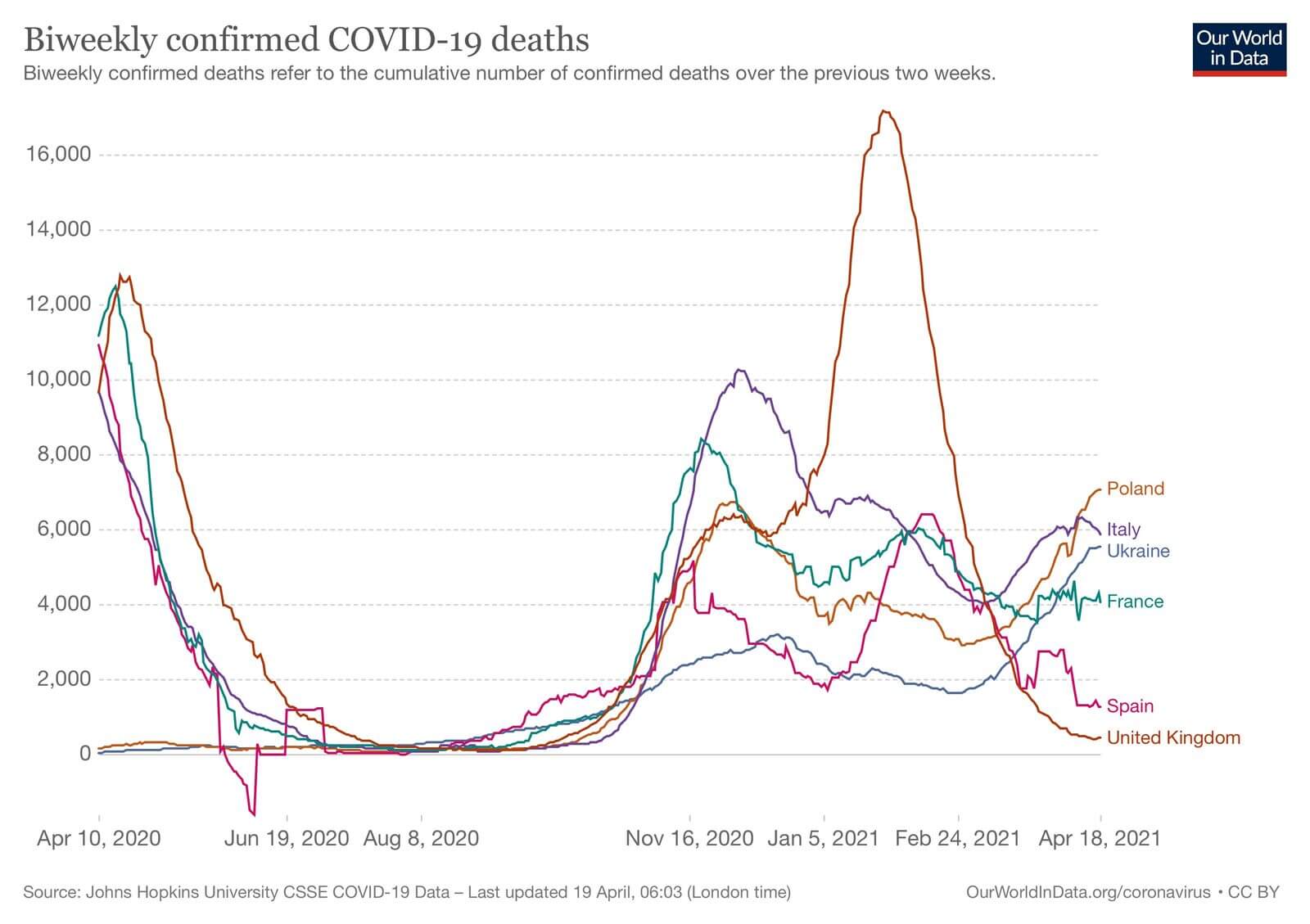 Серед Європейських країн більшість показують спад випадків продовж останніх двох тижнів, як, наприклад, Великобританія, Польща, Італія, проте Україна знаходиться у групі країн, які ще показують ріст випадків (Швеція, Литва, Португалія, Хорватія)