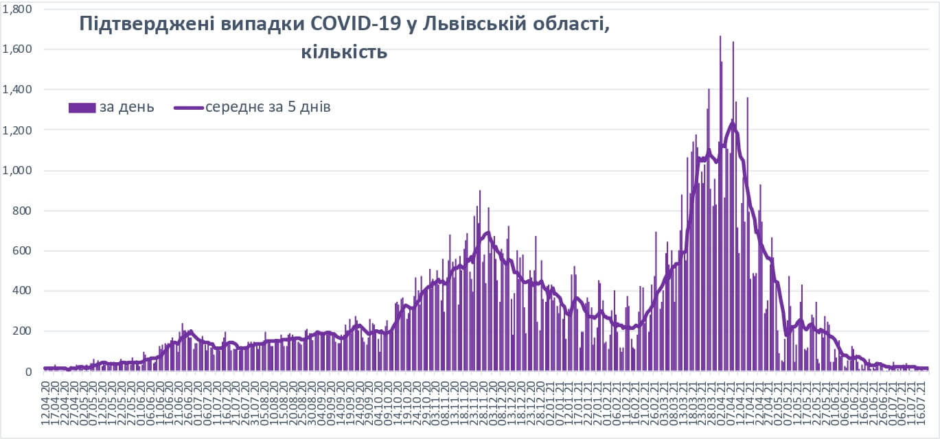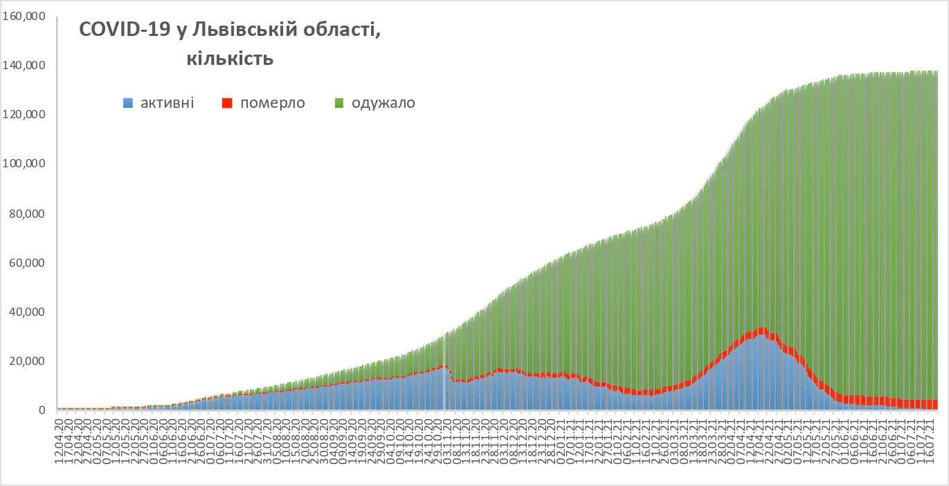Аналіз захворюваності на COVID-19 у Львівській області станом на 20 липня 2021 року