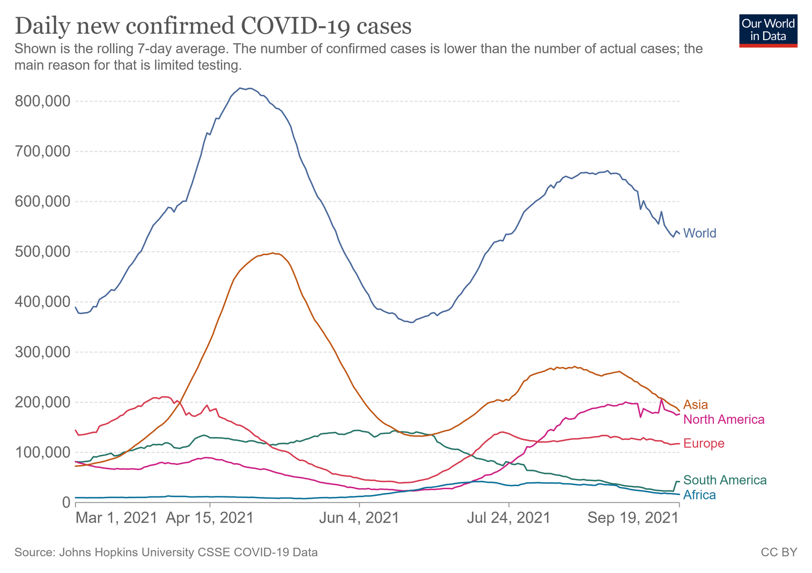 228.5 млн. випадків коронавірусної інфекції зареєстровано всього у світі станом на 20 вересня 2021 року, з них 4,69 млн. смертельних випадків. Спостерігається загальна тенденція до спаду у світі щодо середньоденного виявлення, деякий ріст у Південній Америці, у Європі та Північній Америці — стабілізація на високому рівні.