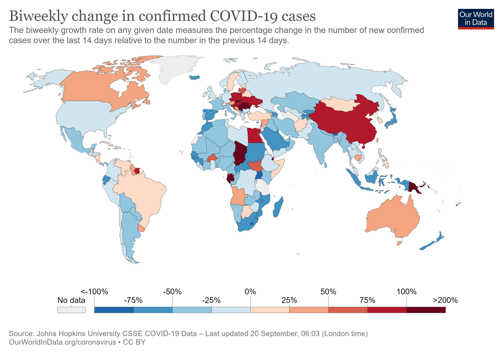 Говорячи в розрізі країн, найбільше країн із суттєвим ростом впродовж останніх двох тижні в порівнянні із попередніми, в Центральній Європі. В Азії бачимо майже 90% ріст випадків у Китаї, серед країн Європи більше 100% росту показали за останні два тижні Сербія, Румунія і Словаччина. В Україні разом із сусідньою Польщею і Молдовою ріст склав практично 90-100% за останні два тижні.