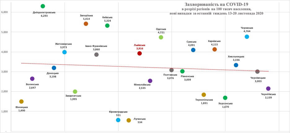 Аналіз ситуації щодо COVID-19 на Львівщині станом на 20 листопада 2020 року