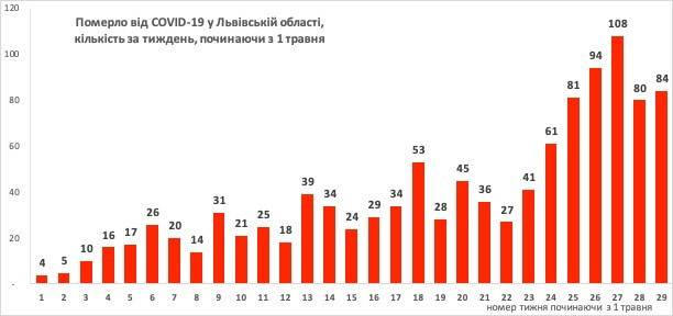 Львівська область, з темпом росту вище середнього по Україні за останній тиждень, знаходиться за цим показником на 9-му місці серед усіх регіонів.