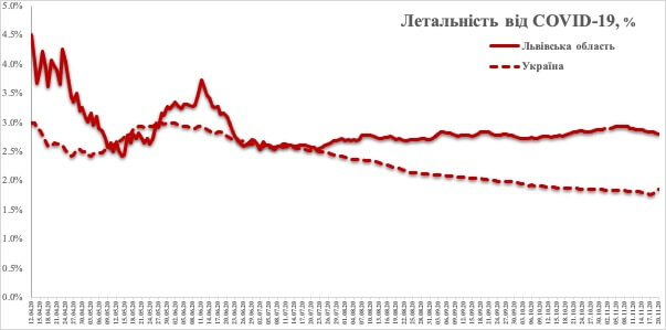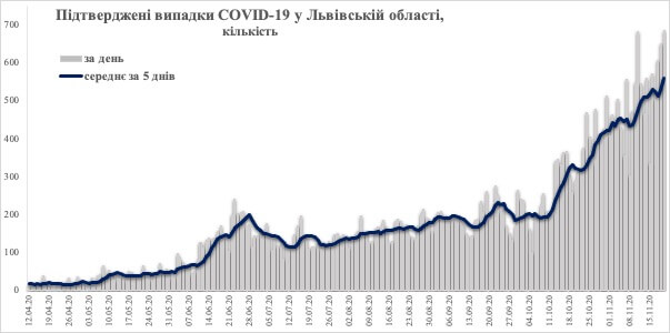 У Львівській області продовжується нарощення темпів росту кількості випадків, що в листопаді сягає понад 600 випадків денно.