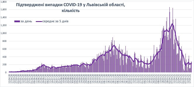 Аналіз ситуації щодо COVID-19 на Львівщині станом на 21 травня 2021 року