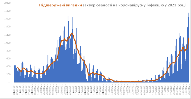 Надзвичайно стрімко розвивається епідемія в області цього разу. Кількість щоденно виявлених випадків цього тижня уже сягнула 1754 особи, що також перевищує максимальне значення при весняному піку (тоді найвище щоденне значення склало 1668 випадків 2 квітня).