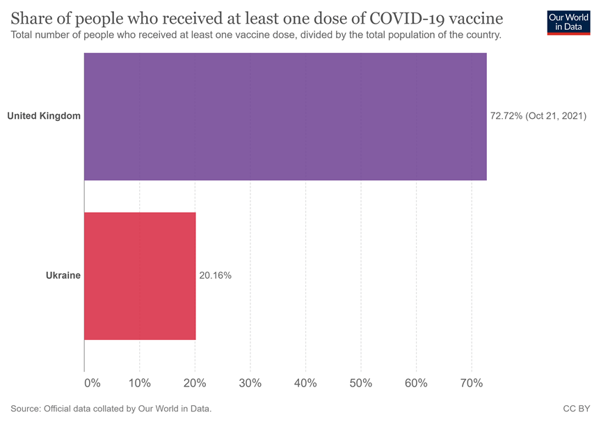 Як бачимо, рівень вакцинації населення, якого досягла на сьогодні Великобританія у 72,7% дозволяє суттєво пом’якшувати наслідки епідемії.