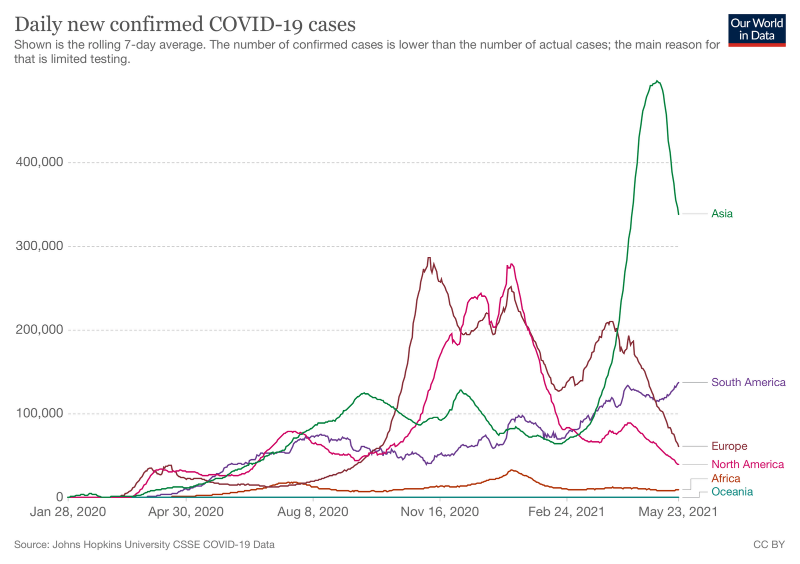 У всіх регіонах світу, окрім Південної Америки, відбувається поступовий спад виявленості випадків коронавірусної інфекції. Все ще більше 50% щоденних випадків, виявлених у світі, складають випадки, виявлені в Азії, проте тенденція до зменшення очевидна. Серед країн Європи ріст випадків впродовж останніх двох тижнів в порівняні із попередніми двома зафіксовано у Норвегії, Данії, Португалії, Білорусі, Росії.