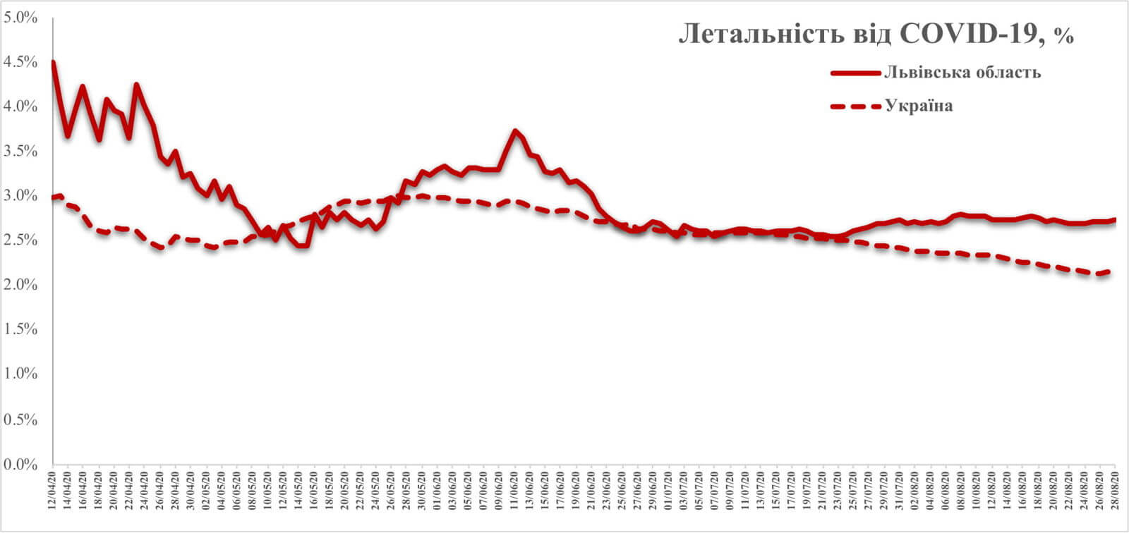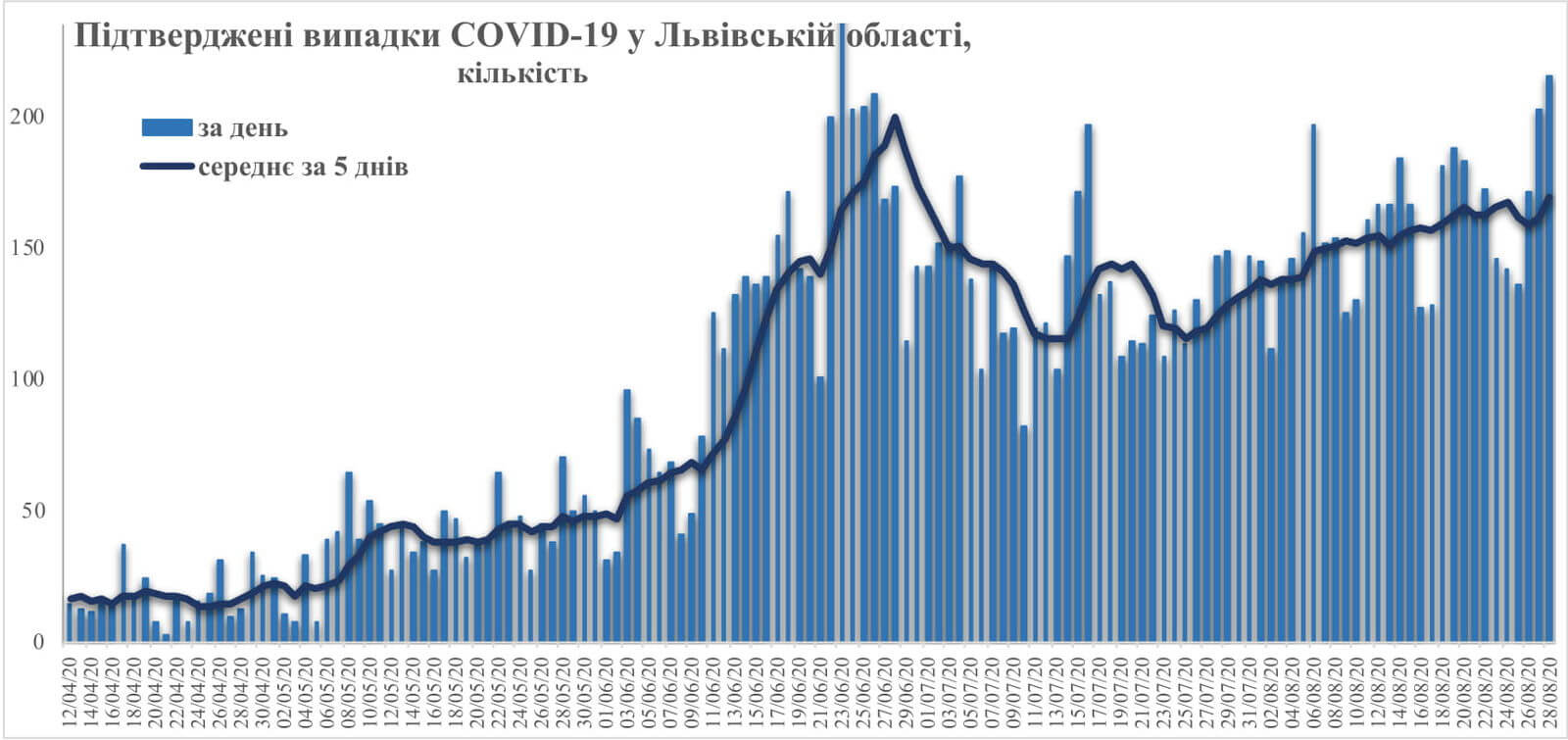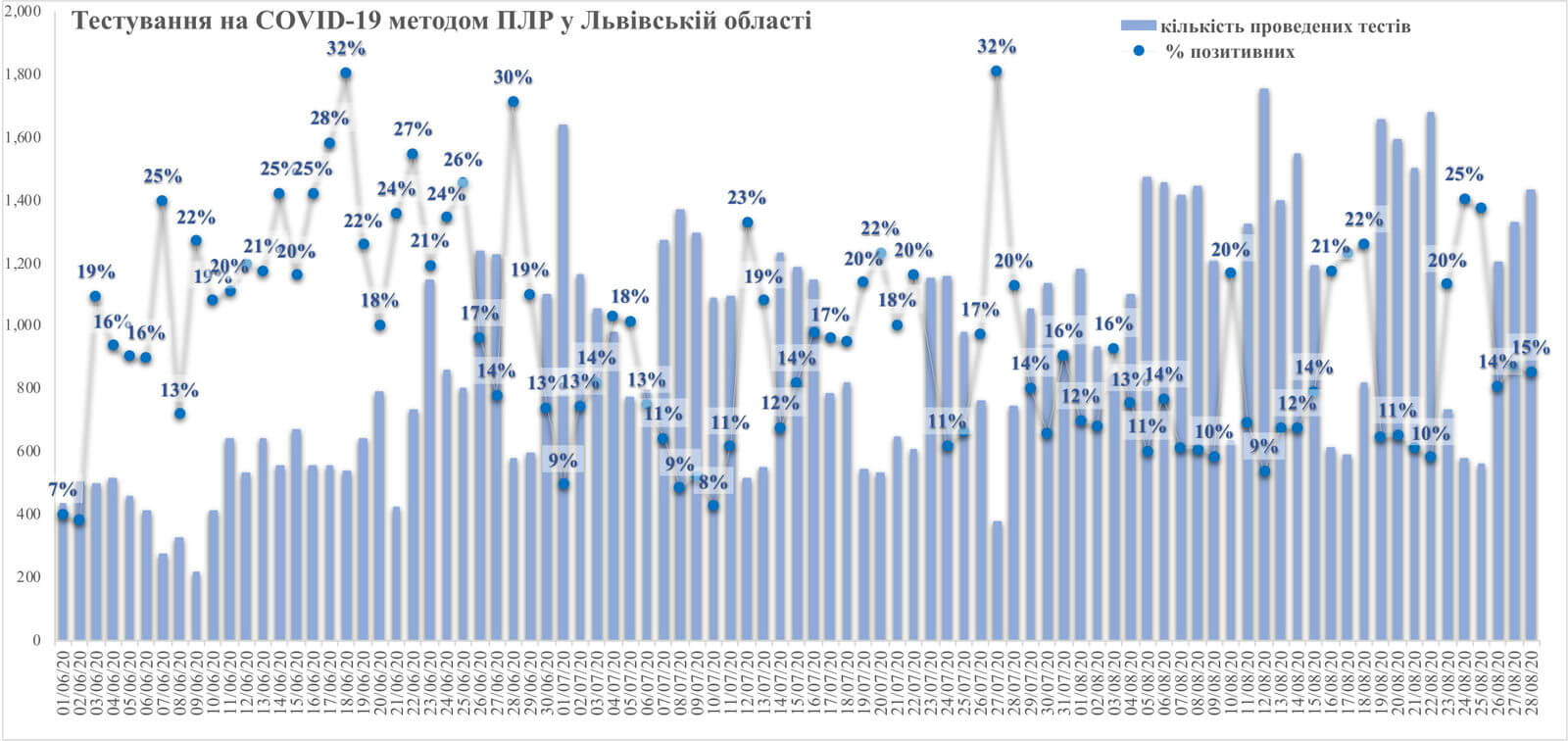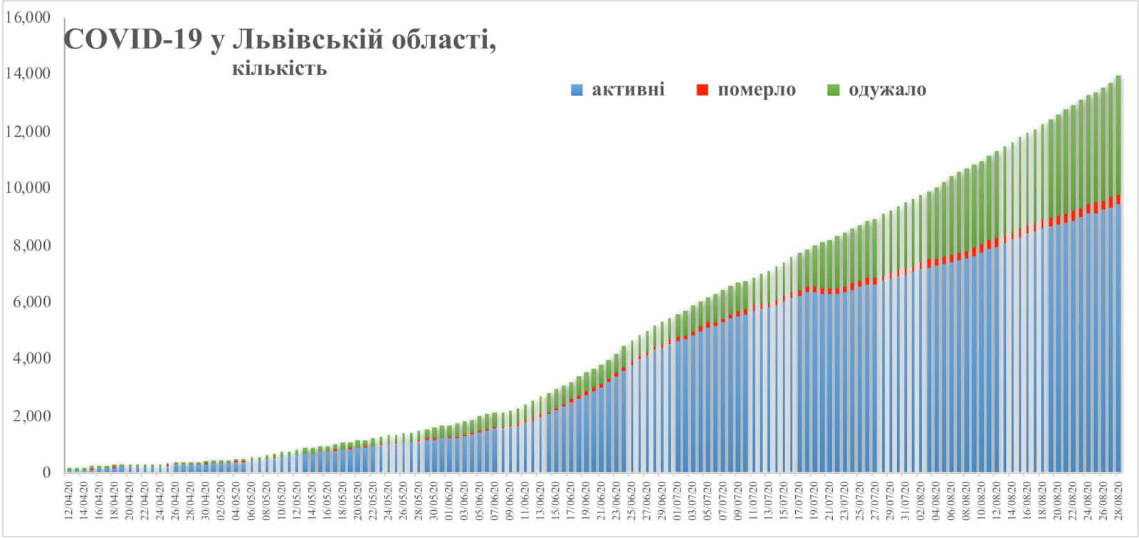 Аналіз ситуації щодо COVID-19 на Львівщині станом на 28.08.2020