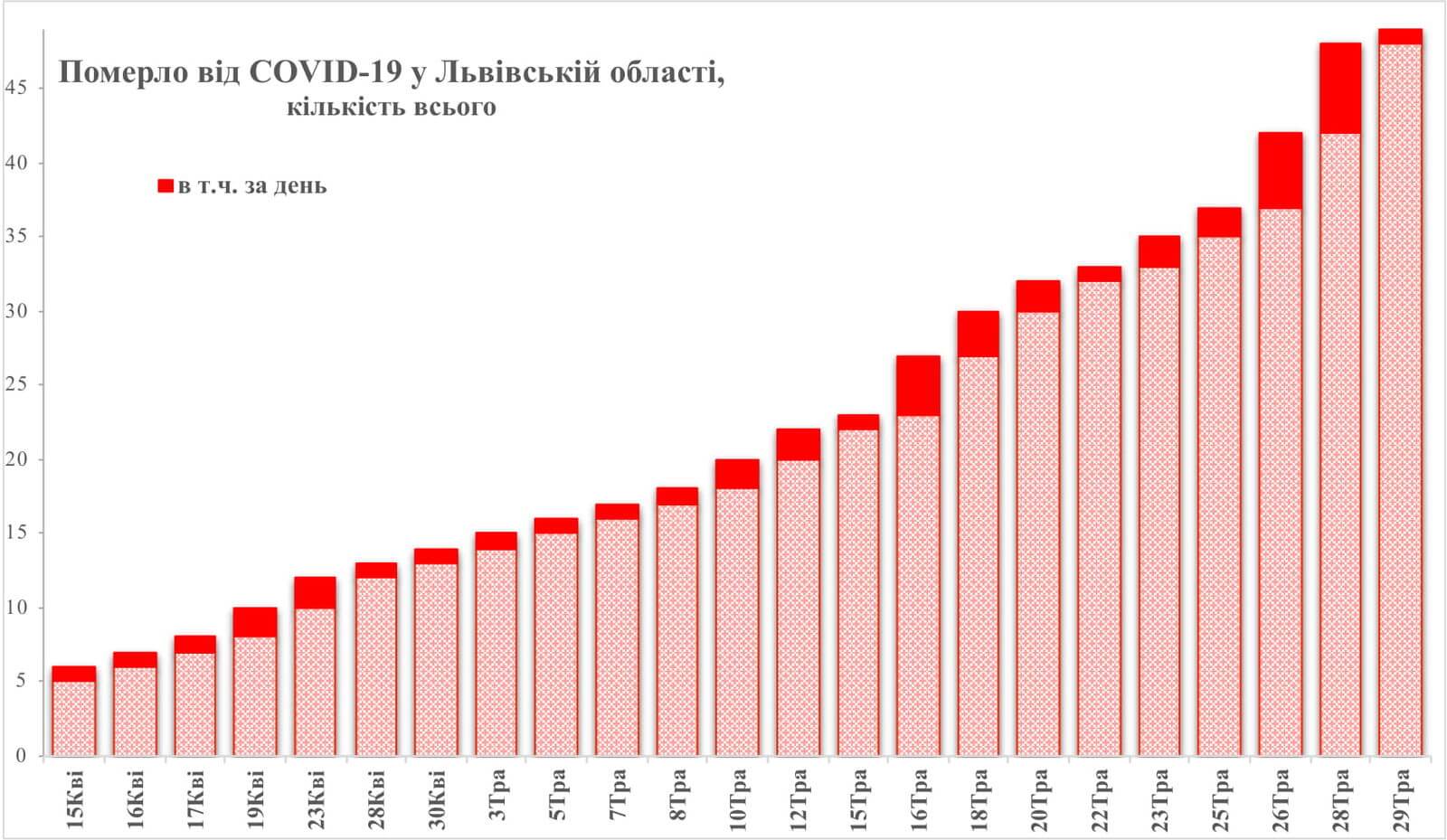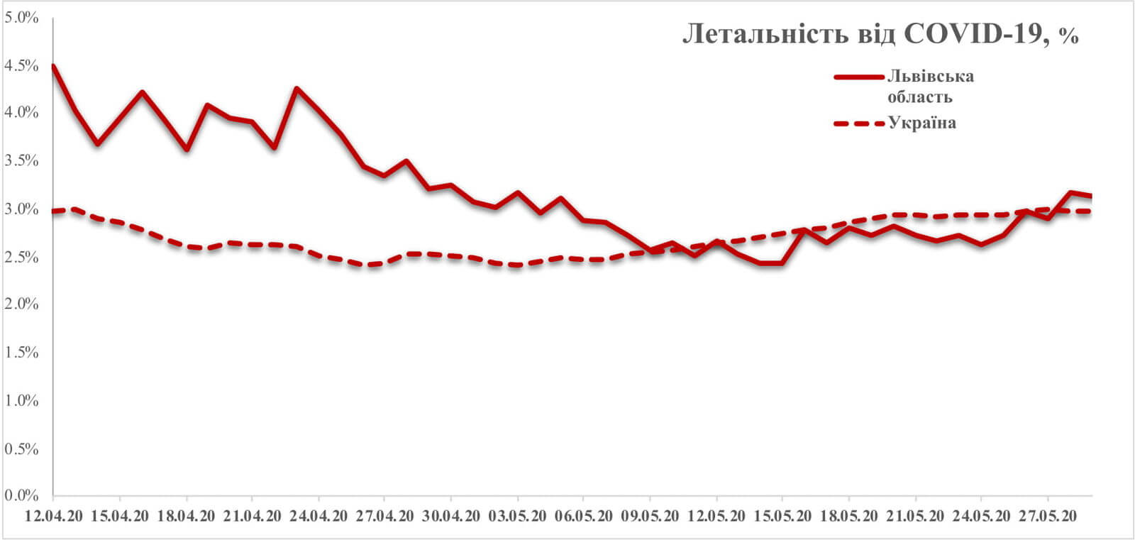 Така кількість померли у підсумку вплинула на летальність у Львівській області, яка станом на 29 травня перевищила летальність по Україні.
