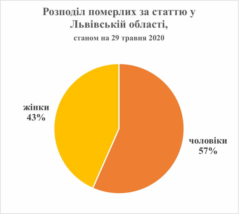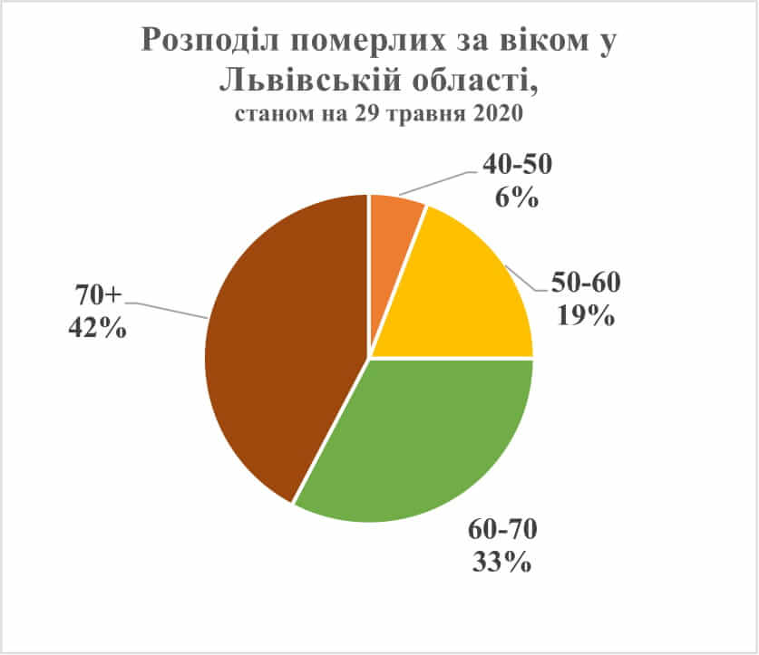 Аналіз летальності від COVID-19 в графіках, підготовлених фахівцями Львівського обласного центру громадського здоров’я, станом на 29 травня.