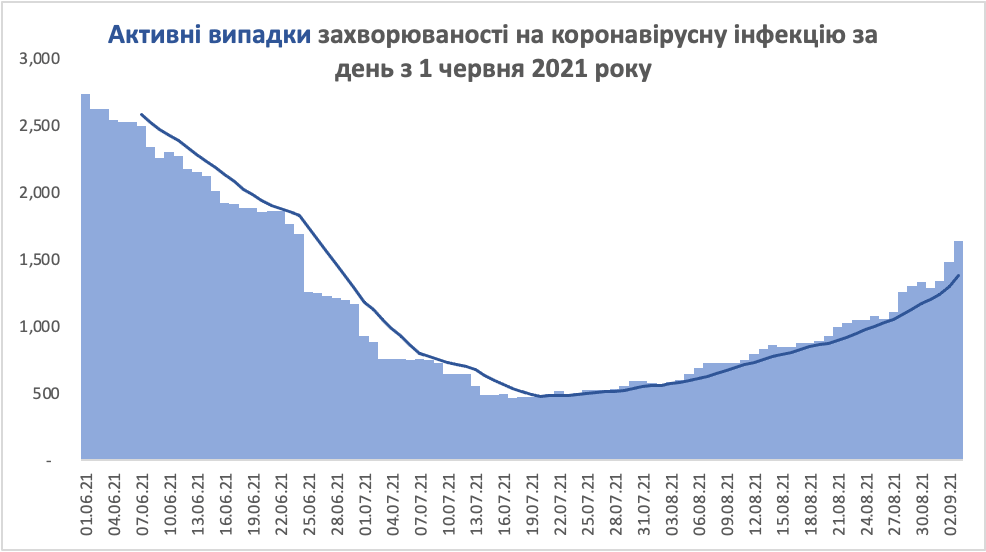 Темпи виявленості хворих почали перевищувати кількість осіб, що одужали, уже з середини липня, проте з кожним днем і тижнем розрив збільшується. Так, на сьогодні кількість активно хворих уже складає 1635 осіб (для порівняння, у липні в середньому складала 600 осіб), і має тенденцію до росту.