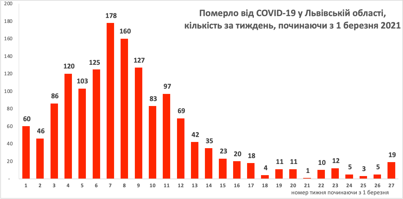 Поки поступово, але зростає смертність, за останній тиждень виявлено 19 летальних випадків від коронавірусної інфекції.