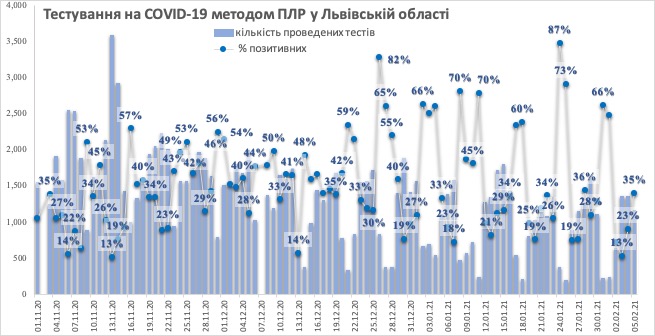 Аналіз ситуації щодо COVID-19 на Львівщині станом на 5 лютого 2021 року