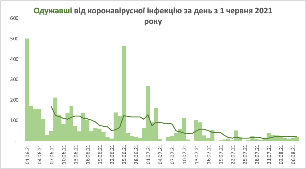 Зменшився темп одужання від коронавірусної інфекції: у липні в середньому 41 особа в день одужувала, а на початку серпня кількість осіб, що одужали, в середньому склала 20 в день.