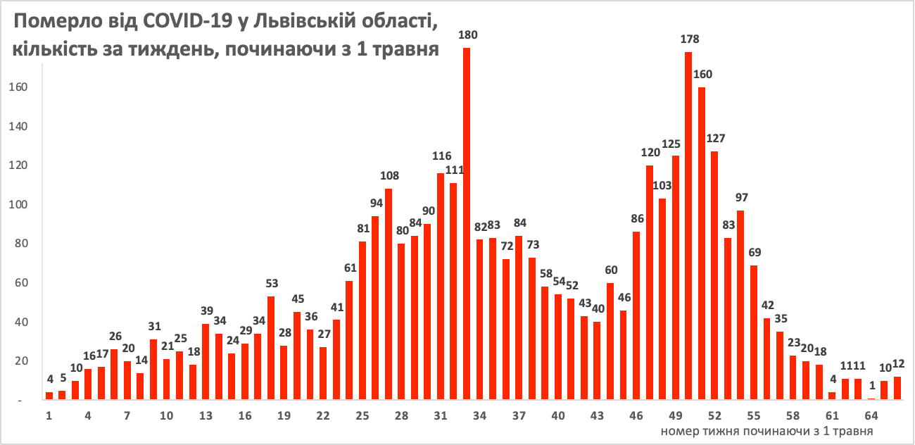 Якщо у липні 2021 вже було два тижні, впродовж яких кількість смертельних випадків, спричинених коронавірусною інфекцією, складала 1 чи 4 за тиждень, то останній тиждень липня та перший тиждень серпня кількість смертей за тиждень уже більше 10.