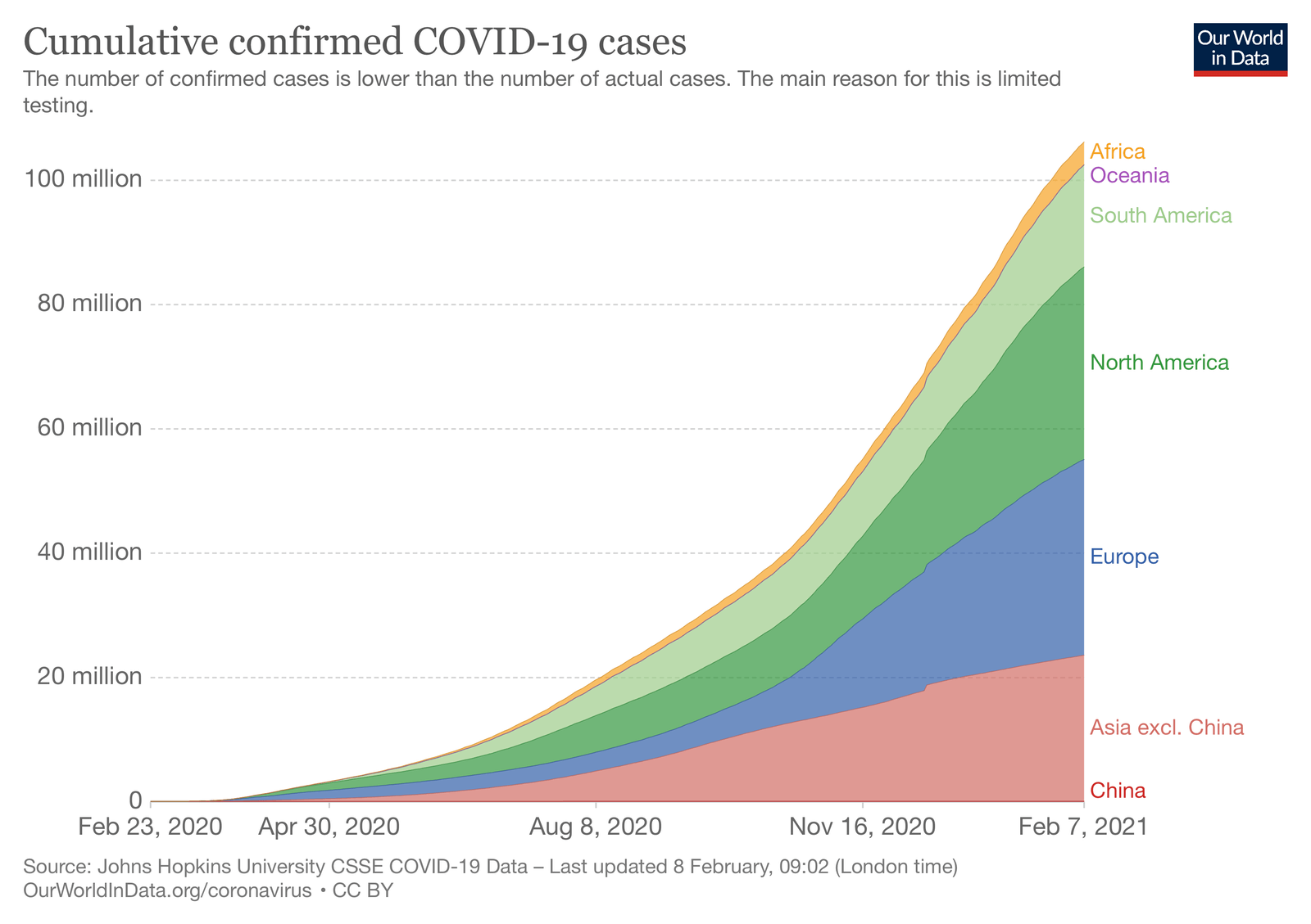 Європа продовжує бути регіоном із найбільшою кількістю виявлених випадків — всього 31 млн., за яким іде регіон Північної Америки із 30 млн. випадків.