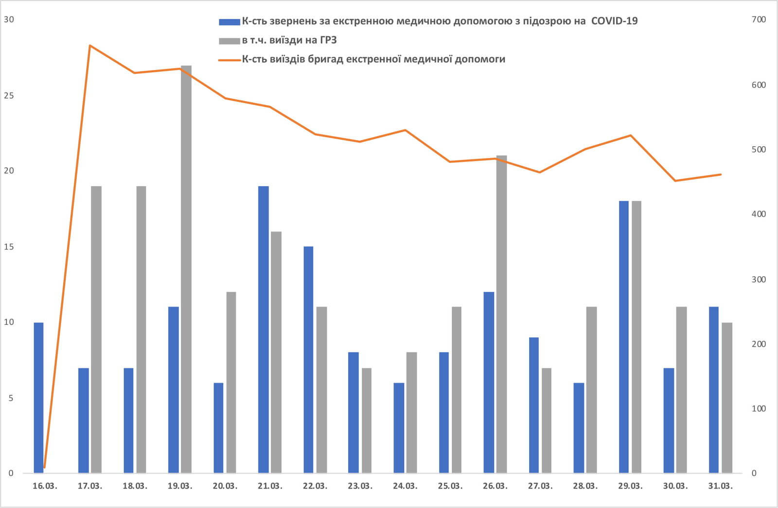 Кількість звернень за екстреною медичною допомогою з підозрою на COVID-19.