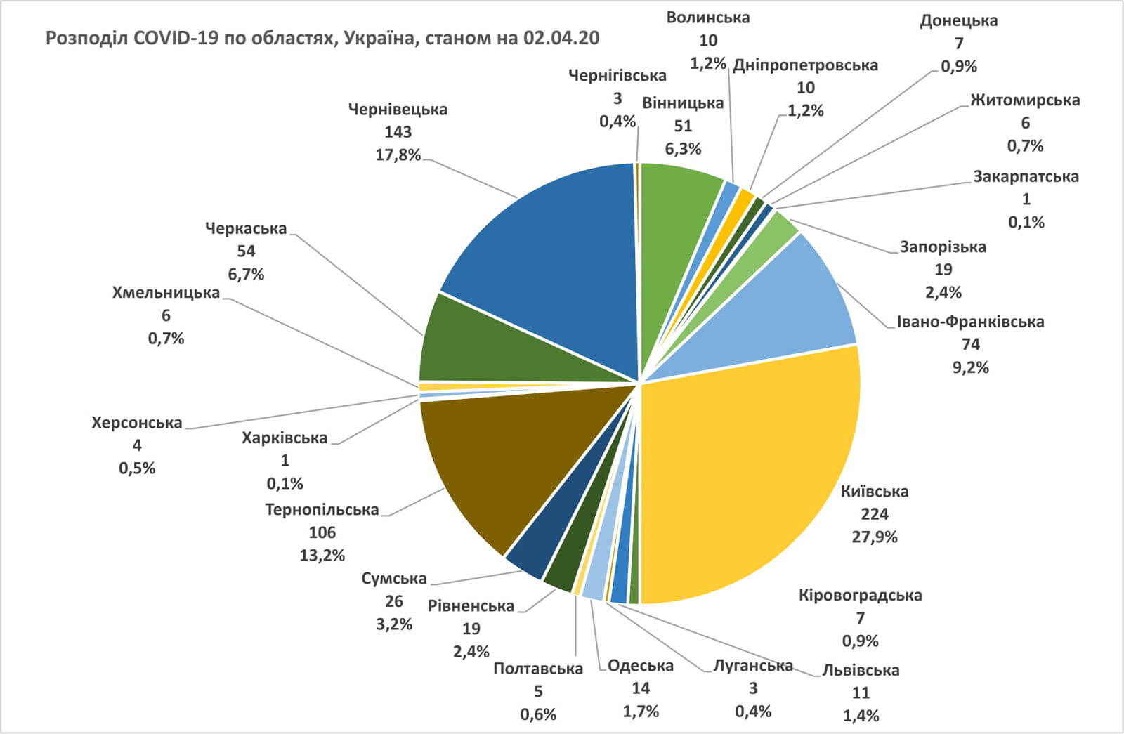 Станом на 2 квітня 2020 року Львівська область знаходиться на 13-му місці по захворюваності на COVID-19.
