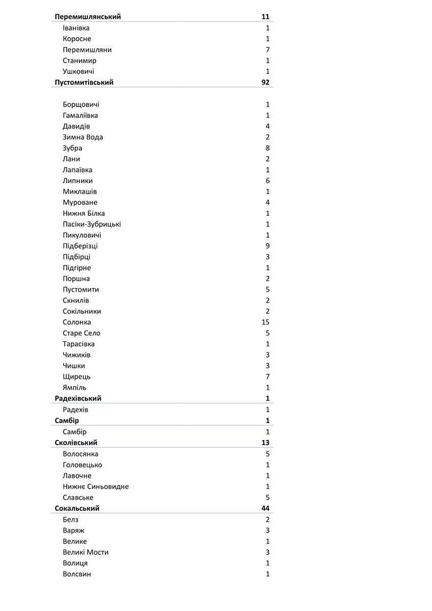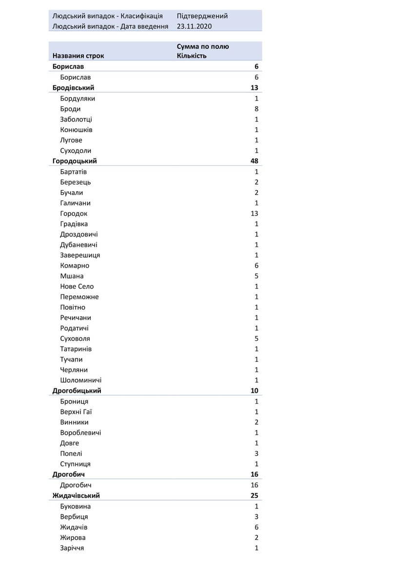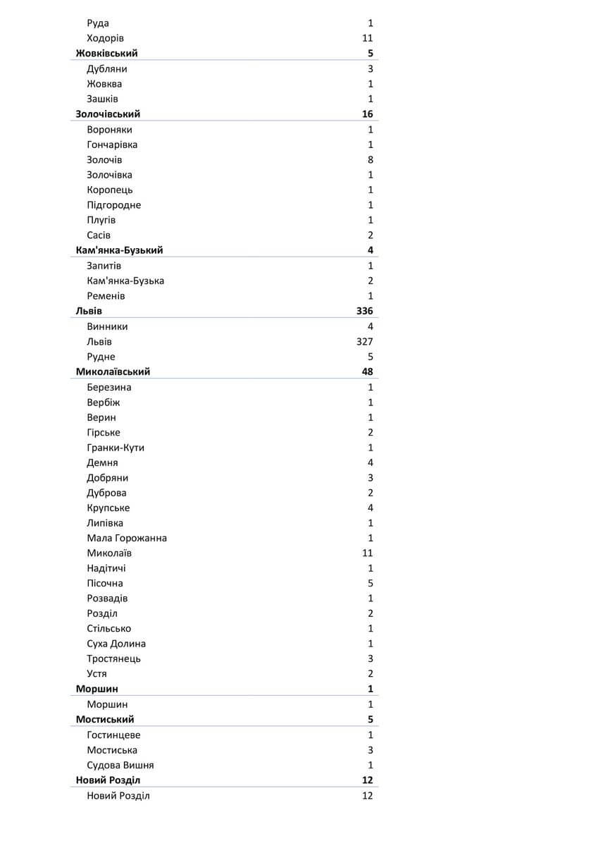 Знаходиться хворих в стаціонарах 1855, з них: у Львівській обласній інфекційній лікарні — 147 у Центрі легеневого здоров’я — 165 у Львівському обласному госпіталі ветеранів воєн та репресованих — 181 у Львівській обласній дитячій клінічній лікарні «ОХМАТДИТ» — 12 у ОКЛ — 38 у ЛШМД — 270 у 1 МКЛ — 89 у 5 МКЛ — 98 у 8 МКЛ — 98 у 1-му пологовому будинку — 18 у Стрийській міській лікарні — 114 у Стебницькій міській лікарні — 63 у Рудківській лікарні — 61 у Новояворівській РЛ № 1 імені Юрія Липи — 112 у Кам’янка-Бузькій ЦРЛ — 57 у Сокальській ЦРЛ — 48 у Жовківській ЦРЛ — 45 у Жидачівській ЦРЛ — 47 у Самбірській ЦРЛ — 31 у Буській ЦРЛ — 46 у Пустомитівській ЦРЛ — 51 у Перемишлянській ЦРЛ — 64