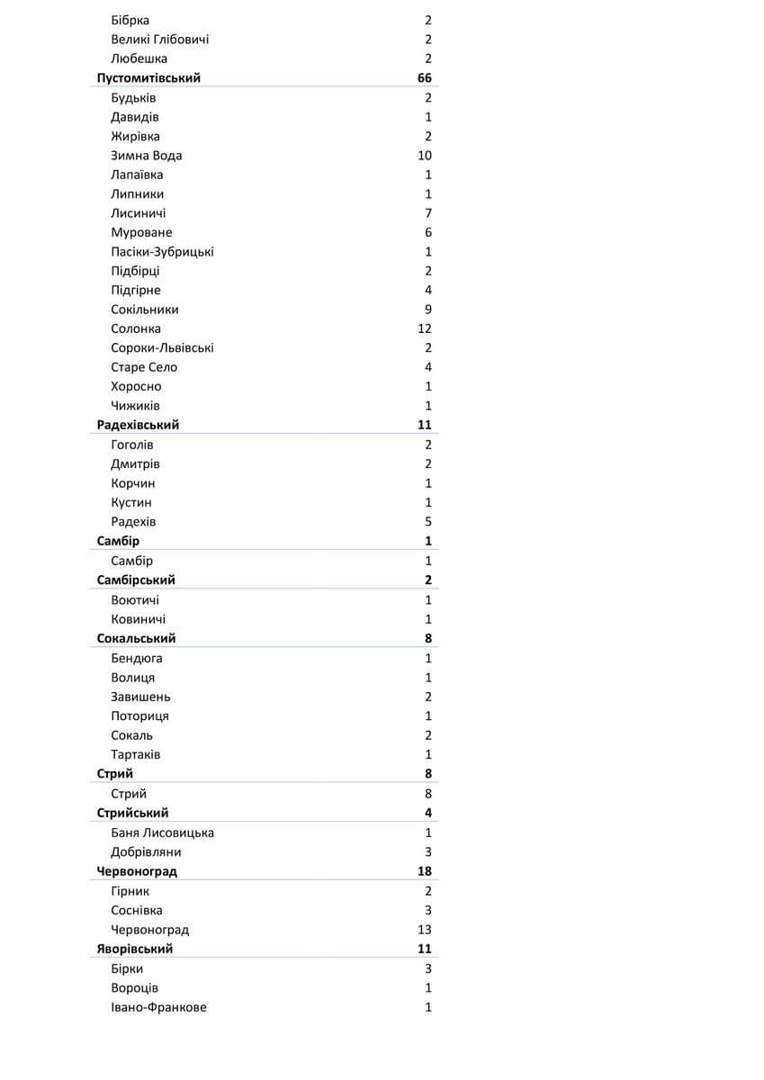 Знаходиться хворих в стаціонарах 1269, з них: у Львівській обласній інфекційній лікарні — 124 у Центрі легеневого здоров’я — 115 у Львівському обласному госпіталі ветеранів воєн та репресованих — 103 у Львівській обласній дитячій клінічній лікарні «ОХМАТДИТ» — 7 у ОКЛ — 24 у ЛШМД — 185 у 1 МКЛ — 55 у 5 МКЛ — 60 у 8 МКЛ — 48 у 1-му пологовому будинку — 5 у Львівській клінічній лікарні на ЗТ філії «ЦОЗ» АТ «Укрзалізниця» — 18 у Стрийській міській лікарні — 69 у Стебницькій міській лікарні — 55 у Рудківській лікарні — 46 у Новояворівській РЛ № 1 імені Юрія Липи — 71 у Кам’янка Бузькій ЦРЛ — 31 у Сокальській ЦРЛ — 31 у Жовківській ЦРЛ — 29 у Жидачівській ЦРЛ — 27 у Самбірській ЦРЛ — 39 у Буській ЦРЛ — 30 у Пустомитівській ЦРЛ — 47 у Перемишлянській ЦРЛ — 50