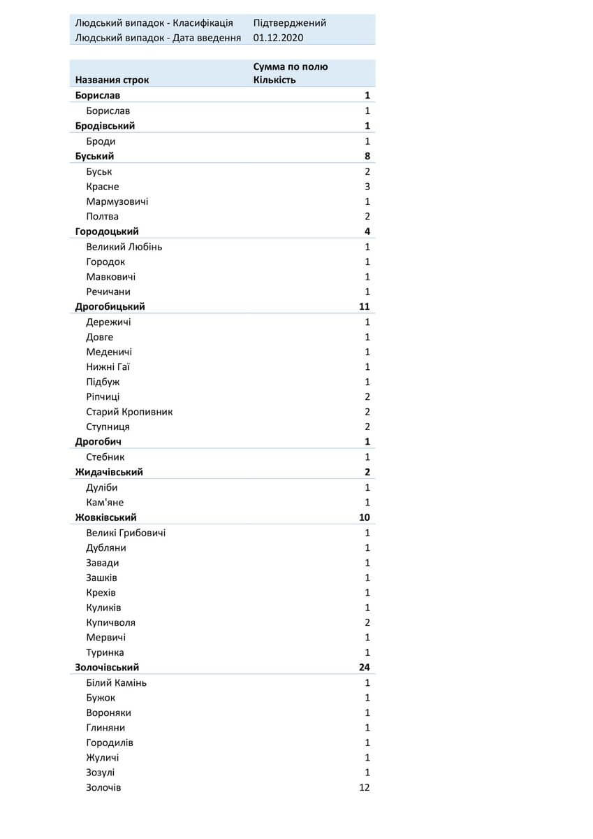 Знаходиться хворих в стаціонарах 1671, з них: у Львівській обласній інфекційній лікарні — 114 у Центрі легеневого здоров’я — 143 у Львівському обласному госпіталі ветеранів воєн та репресованих — 167 у Львівській обласній дитячій клінічній лікарні «ОХМАТДИТ» — 15 у ОКЛ — 28 у ЛШМД — 258 у 1 МКЛ — 85 у 5 МКЛ — 97 у 8 МКЛ — 103 у 1-му пологовому будинку — 16 у Стрийській міській лікарні — 95 у Стебницькій міській лікарні — 53 у Рудківській лікарні — 43 у Новояворівській РЛ № 1 імені Юрія Липи — 102 у Кам’янка-Бузькій ЦРЛ — 51 у Сокальській ЦРЛ — 41 у Жовківській ЦРЛ — 47 у Жидачівській ЦРЛ — 46 у Самбірській ЦРЛ — 26 у Буській ЦРЛ — 39 у Пустомитівській ЦРЛ — 44 у Перемишлянській ЦРЛ — 58.