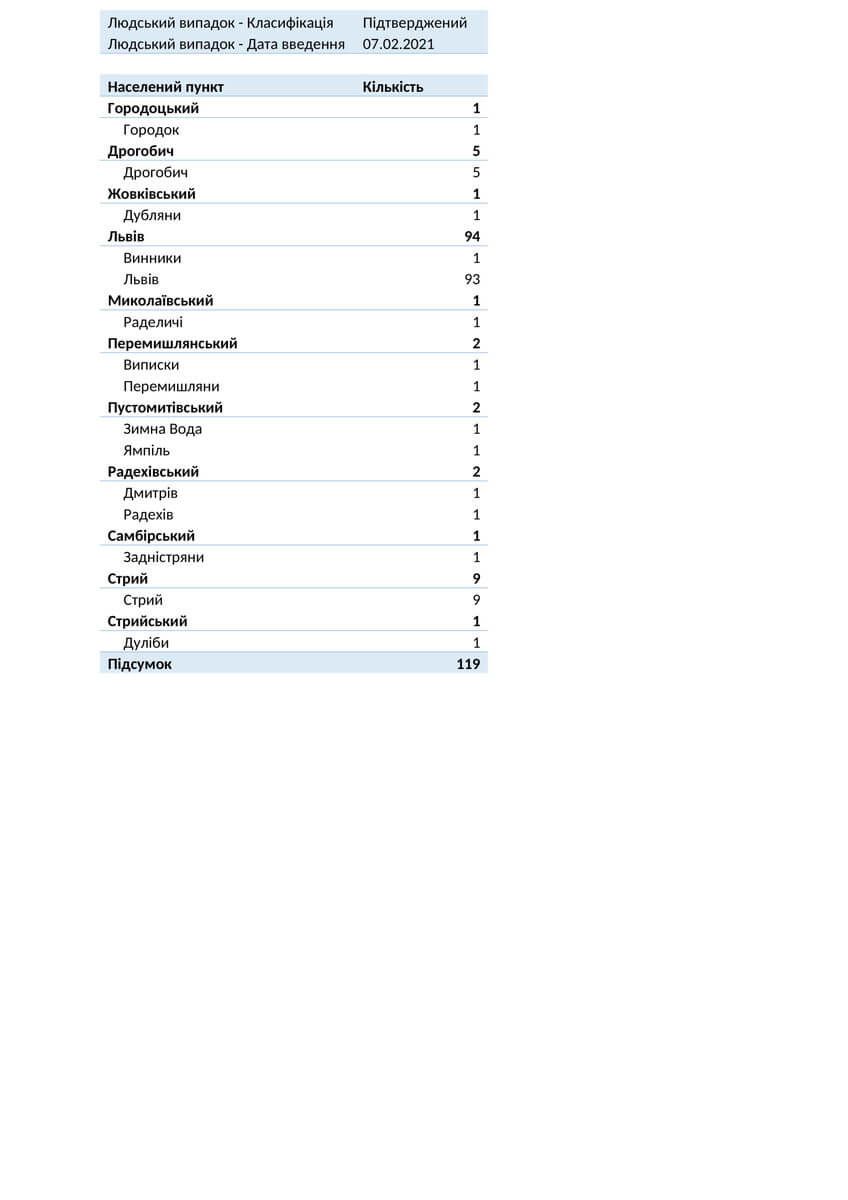 За останню добу на Львівщині на СOVID-19 захворіло 119 осіб.