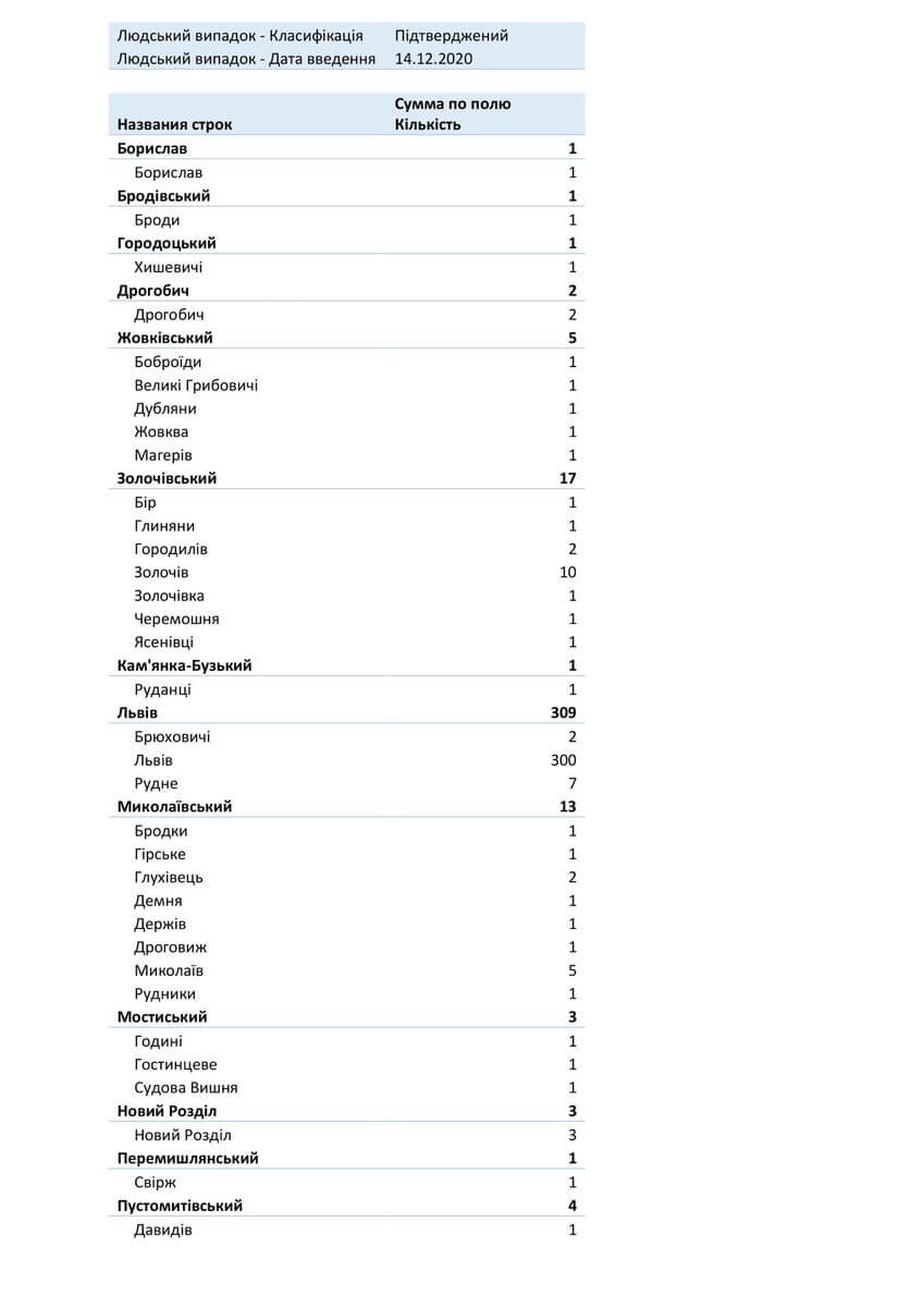 Знаходиться хворих в стаціонарах 1571, з них: у Львівській обласній інфекційній лікарні — 123, у Центрі легеневого здоров’я — 162, у Львівському обласному госпіталі ветеранів воєн та репресованих — 140, у Львівській обласній дитячій клінічній лікарні «ОХМАТДИТ» — 14 у ОКЛ — 34, у ЛШМД — 222, у 1 МКЛ — 83, у 5 МКЛ — 71, у 8 МКЛ — 97, у 1-му пологовому будинку — 11, у Львівській клінічній лікарні на ЗТ філії «ЦОЗ» АТ «Укрзалізниця» — 1, у Стрийській міській лікарні — 75, у Стебницькій міській лікарні — 54, у Рудківській лікарні — 46, у Новояворівській РЛ № 1 імені Юрія Липи — 110, у Кам’янка-Бузькій ЦРЛ — 40, у Сокальській ЦРЛ — 40, у Жовківській ЦРЛ — 38, у Жидачівській ЦРЛ — 46, у Самбірській ЦРЛ — 28, у Буській ЦРЛ — 38, у Пустомитівській ЦРЛ — 46, у Перемишлянській ЦРЛ — 52.