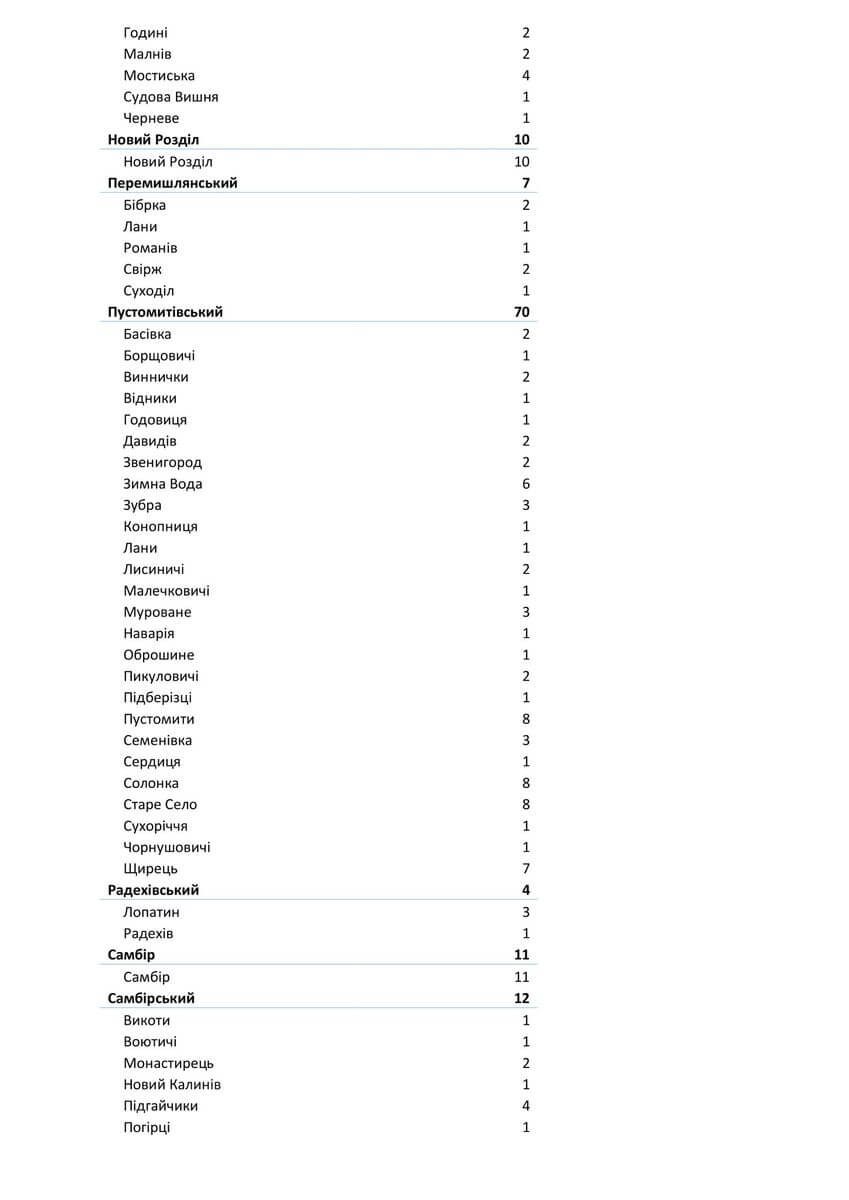 Знаходиться хворих в стаціонарах 1441, з них: у Львівській обласній інфекційній лікарні — 103, у Центрі легеневого здоров’я — 155, у Львівському обласному госпіталі ветеранів воєн та репресованих — 129, у Львівській обласній дитячій клінічній лікарні «ОХМАТДИТ» — 6, у ОКЛ — 38, у ЛШМД — 195, у 1 МКЛ — 72, у 5 МКЛ — 65, у 8 МКЛ — 88, у 1-му пологовому будинку — 11, у Львівській клінічній лікарні на ЗТ філії «ЦОЗ» АТ «Укрзалізниця» — 6, у Стрийській міській лікарні — 64, у Стебницькій міській лікарні — 39, у Рудківській лікарні — 46, у Новояворівській РЛ № 1 імені Юрія Липи — 97, у Кам’янка-Бузькій ЦРЛ — 49, у Сокальській ЦРЛ — 39, у Жовківській ЦРЛ — 33, у Жидачівській ЦРЛ — 46, у Самбірській ЦРЛ — 29, у Буській ЦРЛ — 35, у Пустомитівській ЦРЛ — 47, у Перемишлянській ЦРЛ — 49.