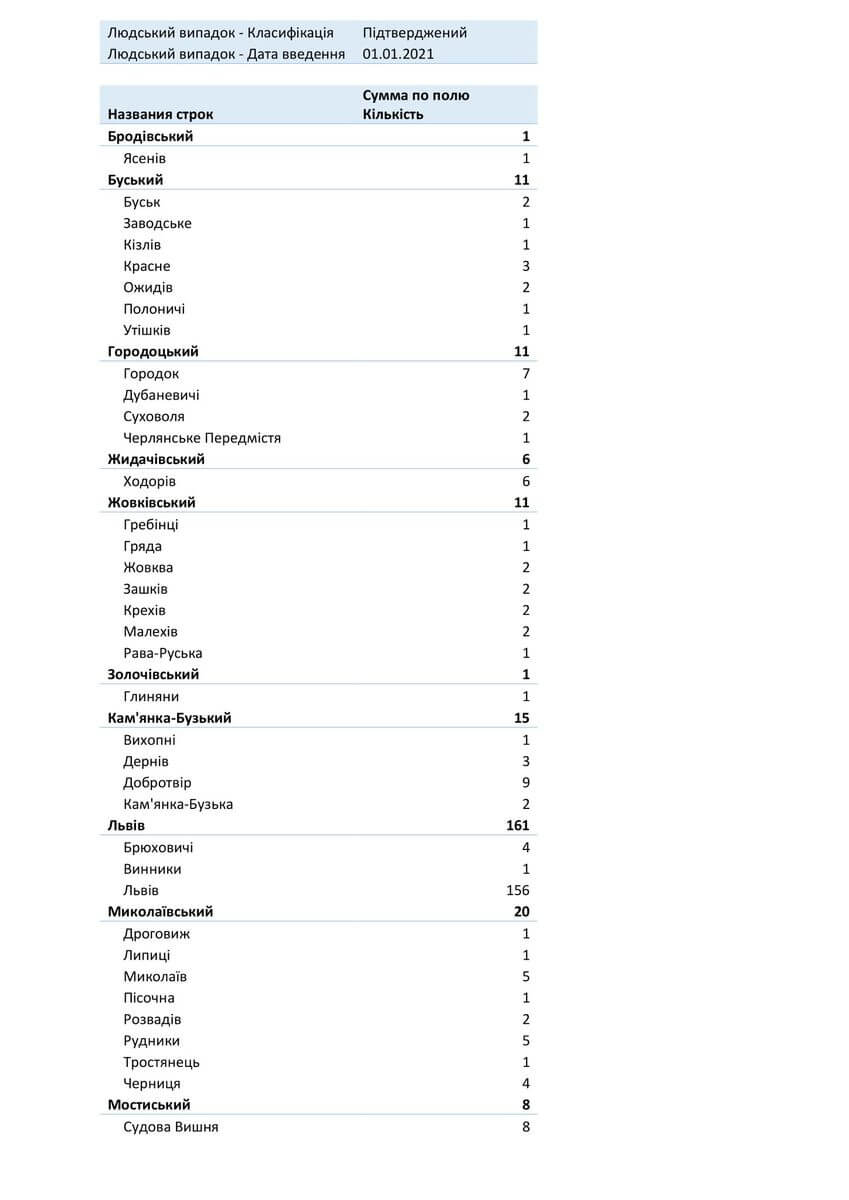 Знаходиться хворих в стаціонарах 1325, з них: у Львівській обласній інфекційній лікарні — 100, у Центрі легеневого здоров’я — 95, у Львівському обласному госпіталі ветеранів воєн та репресованих — 117, у Львівській обласній дитячій клінічній лікарні «ОХМАТДИТ» — 12, у ОКЛ — 31, у ЛШМД — 224, у 1 МКЛ — 65, у 5 МКЛ — 57, у 8 МКЛ — 75, у 1-му пологовому будинку — 6, у Львівській клінічній лікарні на ЗТ філії «ЦОЗ» АТ «Укрзалізниця» — 15, у Стрийській міській лікарні — 58, у Стебницькій міській лікарні — 24, у Рудківській лікарні — 44, у Новояворівській РЛ № 1 імені Юрія Липи — 88, у Кам’янка-Бузькій ЦРЛ — 43, у Сокальській ЦРЛ — 37, у Жовківській ЦРЛ — 29, у Жидачівській ЦРЛ — 42, у Самбірській ЦРЛ — 30, у Буській ЦРЛ — 36, у Пустомитівській ЦРЛ — 42, у Перемишлянській ЦРЛ — 55.