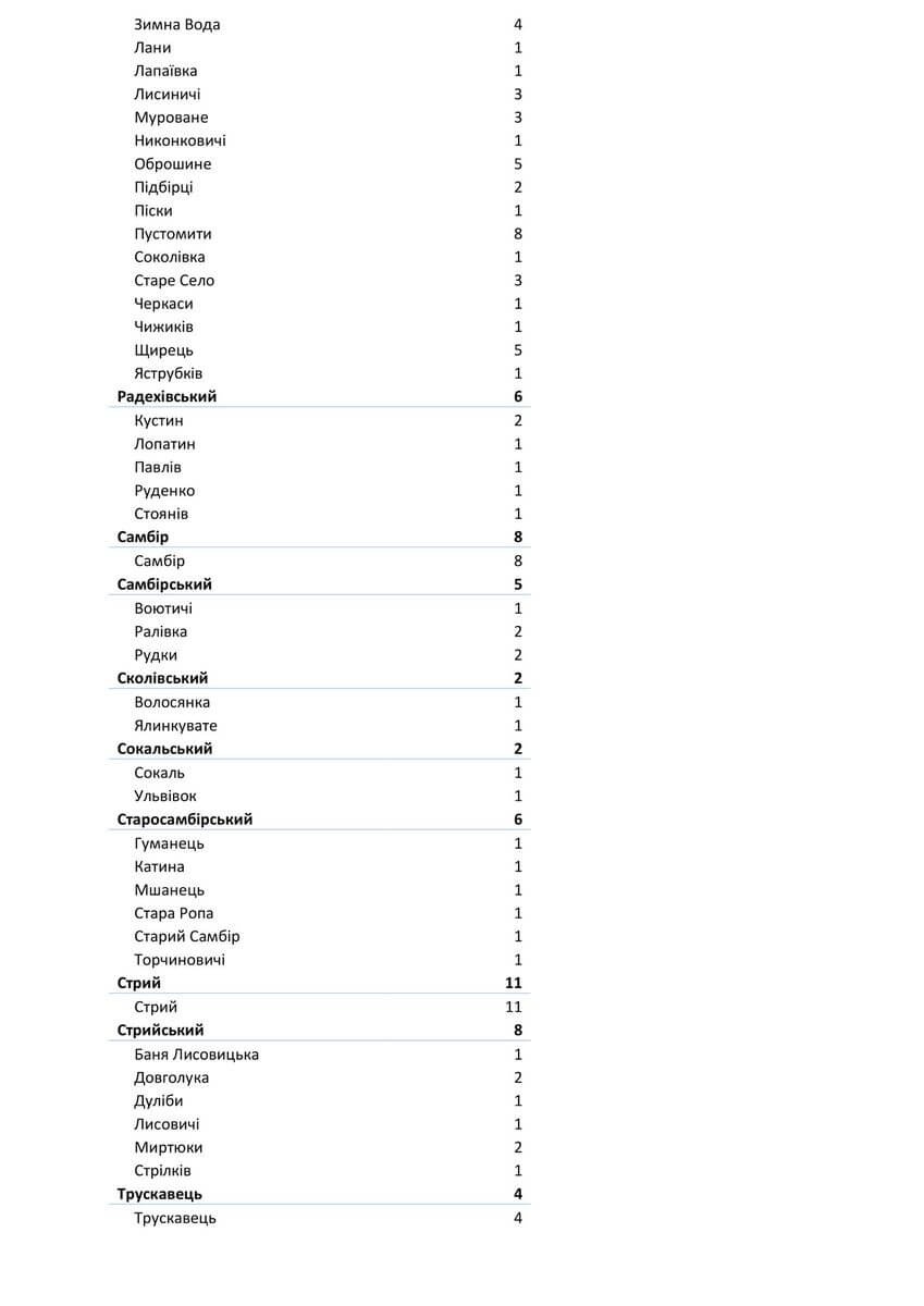 Знаходиться хворих в стаціонарах 1221, з них: у Львівській обласній інфекційній лікарні — 117, у Центрі легеневого здоров’я — 112, у Львівському обласному госпіталі ветеранів воєн та репресованих — 99, у Львівській обласній дитячій клінічній лікарні «ОХМАТДИТ» — 9, у ОКЛ — 28, у ЛШМД — 175, у 1 МКЛ — 51, у 5 МКЛ — 48, у 8 МКЛ — 47, у 1-му пологовому будинку — 4, у Львівській клінічній лікарні на ЗТ філії «ЦОЗ» АТ «Укрзалізниця» — 18, у Стрийській міській лікарні — 69, у Стебницькій міській лікарні — 59, у Рудківській лікарні — 47, у Новояворівській РЛ № 1 імені Юрія Липи — 70, у Кам’янка Бузькій ЦРЛ — 31, у Сокальській ЦРЛ — 27, у Жовківській ЦРЛ — 23, у Жидачівській ЦРЛ — 30, у Самбірській ЦРЛ — 44, у Буській ЦРЛ — 26, у Пустомитівській ЦРЛ — 45, у Перемишлянській ЦРЛ — 42.