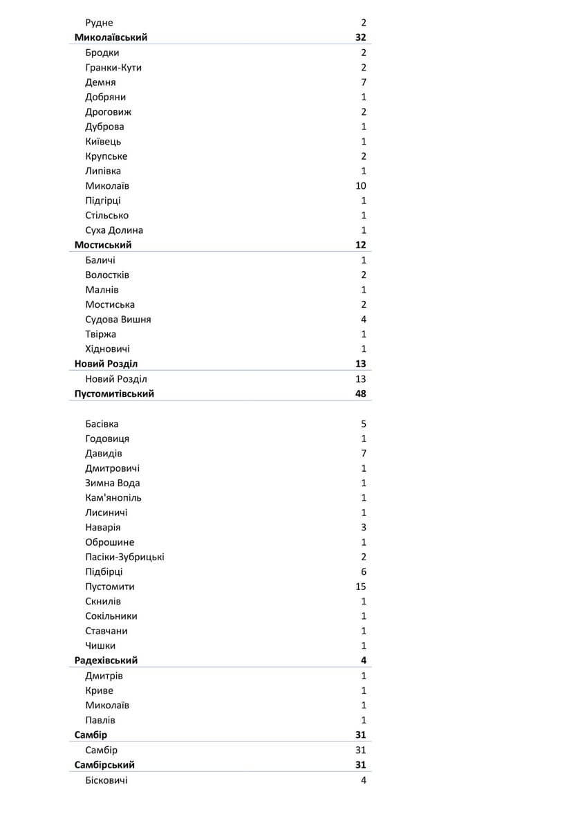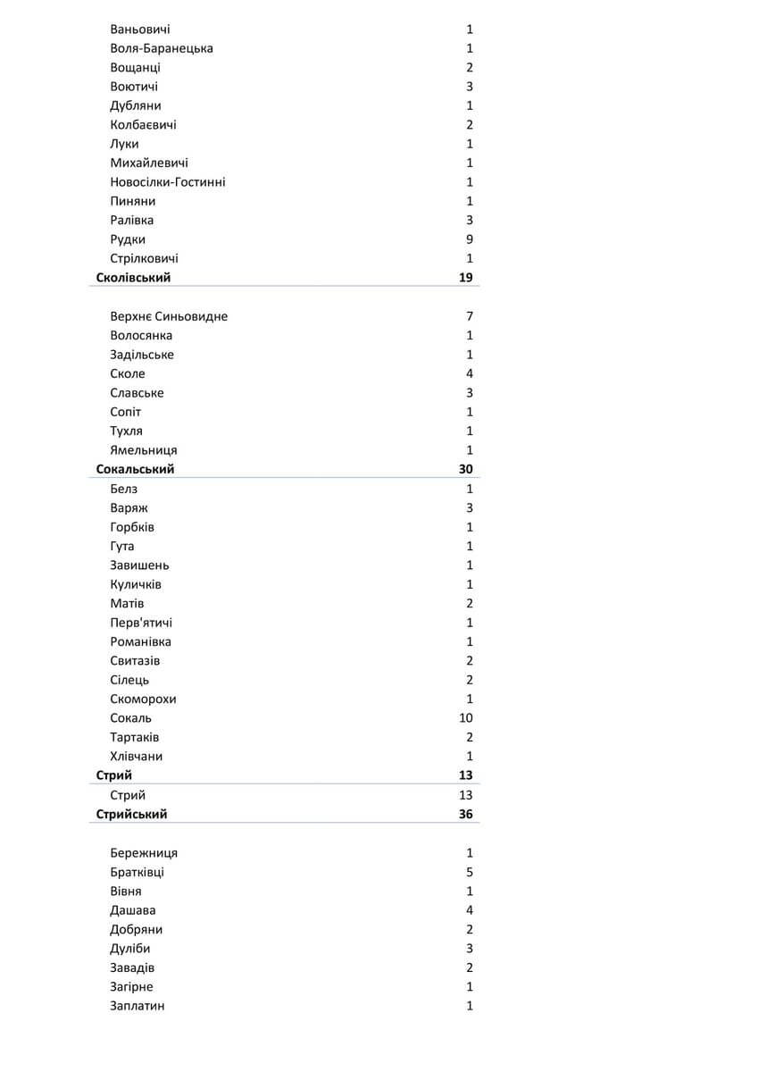 Знаходиться хворих в стаціонарах 1813, з них: у Львівській обласній інфекційній лікарні — 134 у Центрі легеневого здоров’я — 164 у Львівському обласному госпіталі ветеранів воєн та репресованих — 174 у Львівській обласній дитячій клінічній лікарні «ОХМАТДИТ» — 15 у ОКЛ — 33 у ЛШМД — 257 у 1 МКЛ — 92 у 5 МКЛ — 106 у 8 МКЛ — 108 у 1-му пологовому будинку — 19 у Стрийській міській лікарні — 98 у Стебницькій міській лікарні — 67 у Рудківській лікарні — 49 у Новояворівській РЛ № 1 імені Юрія Липи — 100 у Кам’янка-Бузькій ЦРЛ — 51 у Сокальській ЦРЛ — 51 у Жовківській ЦРЛ — 52 у Жидачівській ЦРЛ — 52 у Самбірській ЦРЛ — 31 у Буській ЦРЛ — 42 у Пустомитівській ЦРЛ — 52 у Перемишлянській ЦРЛ — 66.