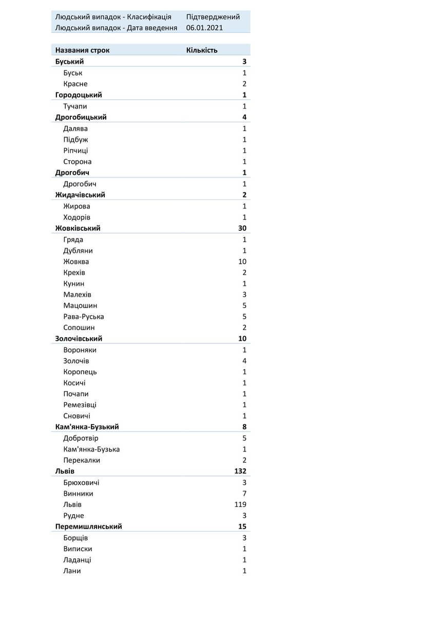 Знаходиться хворих в стаціонарах 1253, з них: у Львівській обласній інфекційній лікарні — 92, у Центрі легеневого здоров’я — 97, у Львівському обласному госпіталі ветеранів воєн та репресованих — 115, у Львівській обласній дитячій клінічній лікарні «ОХМАТДИТ» — 12, у ОКЛ — 26, у ЛШМД — 228, у 1 МКЛ — 62, у 5 МКЛ — 52, у 8 МКЛ — 64, у 1-му пологовому будинку — 10, у Львівській клінічній лікарні на ЗТ філії «ЦОЗ» АТ «Укрзалізниця» — 15, у Стрийській міській лікарні — 62, у Стебницькій міській лікарні — 38, у Рудківській лікарні — 43, у Новояворівській РЛ № 1 імені Юрія Липи — 68, у Кам’янка-Бузькій ЦРЛ — 38, у Сокальській ЦРЛ — 30, у Жовківській ЦРЛ — 13, у Жидачівській ЦРЛ — 34, у Самбірській ЦРЛ — 27, у Буській ЦРЛ — 31, у Пустомитівській ЦРЛ — 42, у Перемишлянській ЦРЛ — 54.