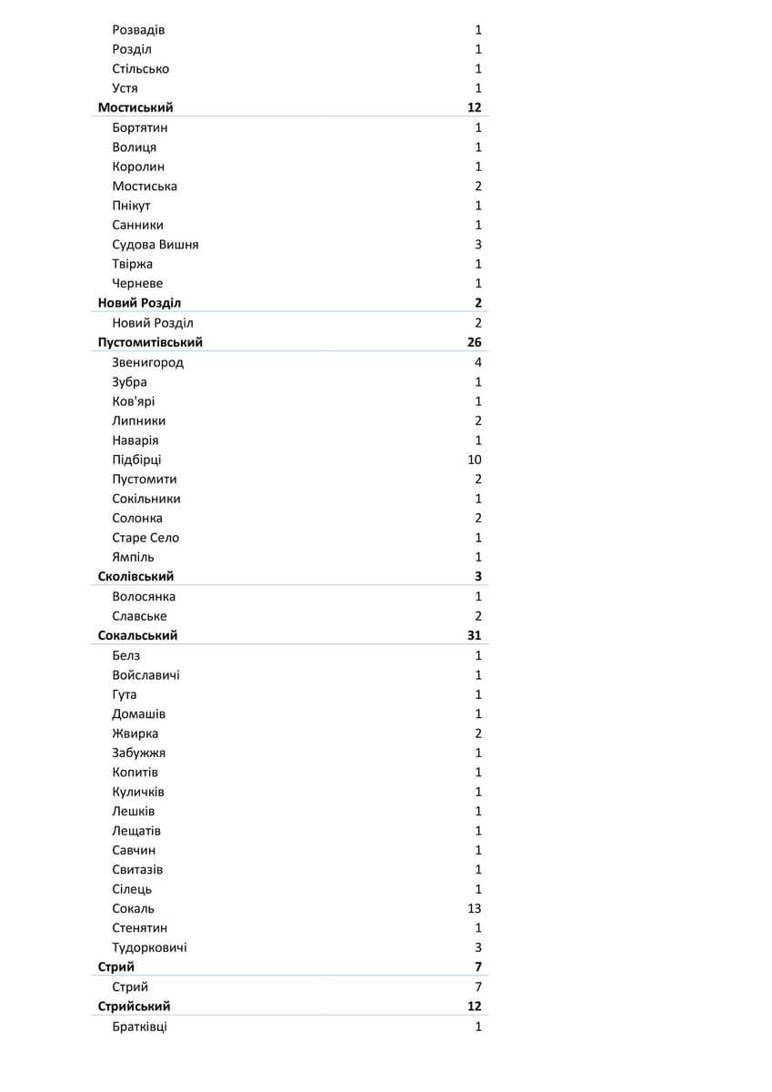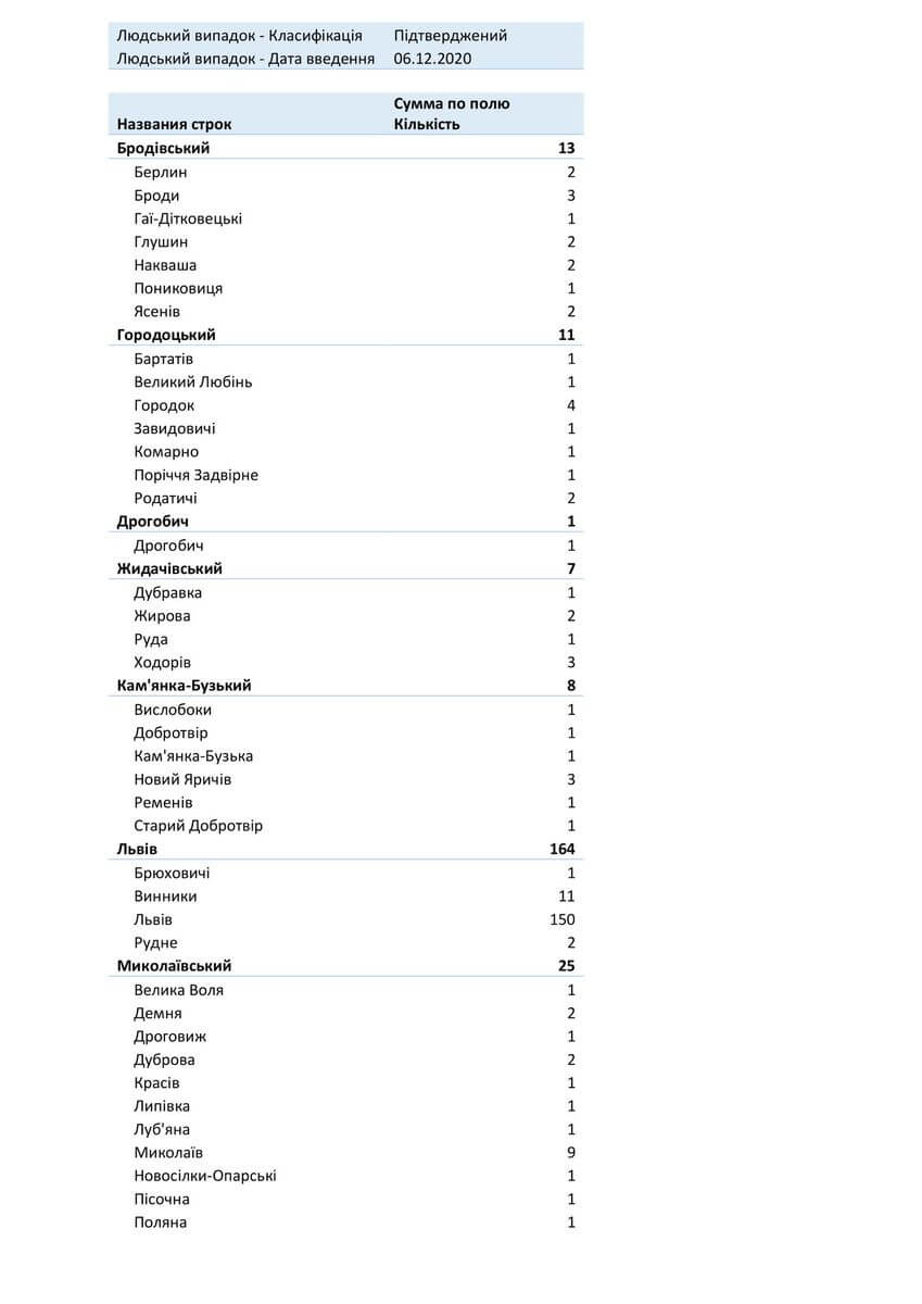 Знаходиться хворих в стаціонарах 1636, з них: у Львівській обласній інфекційній лікарні — 106, у Центрі легеневого здоров’я — 144, у Львівському обласному госпіталі ветеранів воєн та репресованих — 145, у Львівській обласній дитячій клінічній лікарні «ОХМАТДИТ» — 19, у ОКЛ — 32, у ЛШМД — 242, у 1 МКЛ — 82, у 5 МКЛ — 102, у 8 МКЛ — 111, у 1-му пологовому будинку — 11, у Стрийській міській лікарні — 82, у Стебницькій міській лікарні — 64, у Рудківській лікарні — 38, у Новояворівській РЛ № 1 імені Юрія Липи — 103, у Кам’янка-Бузькій ЦРЛ — 51, у Сокальській ЦРЛ — 48, у Жовківській ЦРЛ — 45, у Жидачівській ЦРЛ — 50, у Самбірській ЦРЛ — 31, у Буській ЦРЛ — 39, у Пустомитівській ЦРЛ — 44, у Перемишлянській ЦРЛ — 47.