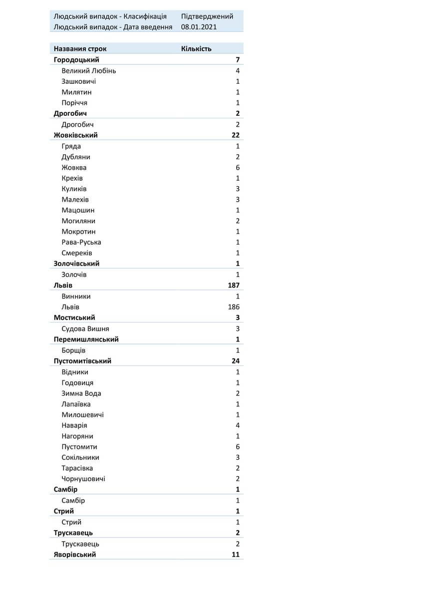 Знаходиться хворих в стаціонарах 1272, з них: у Львівській обласній інфекційній лікарні — 89, у Центрі легеневого здоров’я — 97, у Львівському обласному госпіталі ветеранів воєн та репресованих — 116, у Львівській обласній дитячій клінічній лікарні «ОХМАТДИТ» — 12, у ОКЛ — 27, у ЛШМД — 241, у 1 МКЛ — 59, у 5 МКЛ — 45, у 8 МКЛ — 64, у 1-му пологовому будинку — 9, у Львівській клінічній лікарні на ЗТ філії «ЦОЗ» АТ «Укрзалізниця» — 17, у Стрийській міській лікарні — 65, у Стебницькій міській лікарні — 36, у Рудківській лікарні — 45, у Новояворівській РЛ № 1 імені Юрія Липи — 71, у Кам’янка-Бузькій ЦРЛ — 40, у Сокальській ЦРЛ — 30, у Жовківській ЦРЛ — 13, у Жидачівській ЦРЛ — 32, у Самбірській ЦРЛ — 30, у Буській ЦРЛ — 36, у Пустомитівській ЦРЛ — 47, у Перемишлянській ЦРЛ — 51.