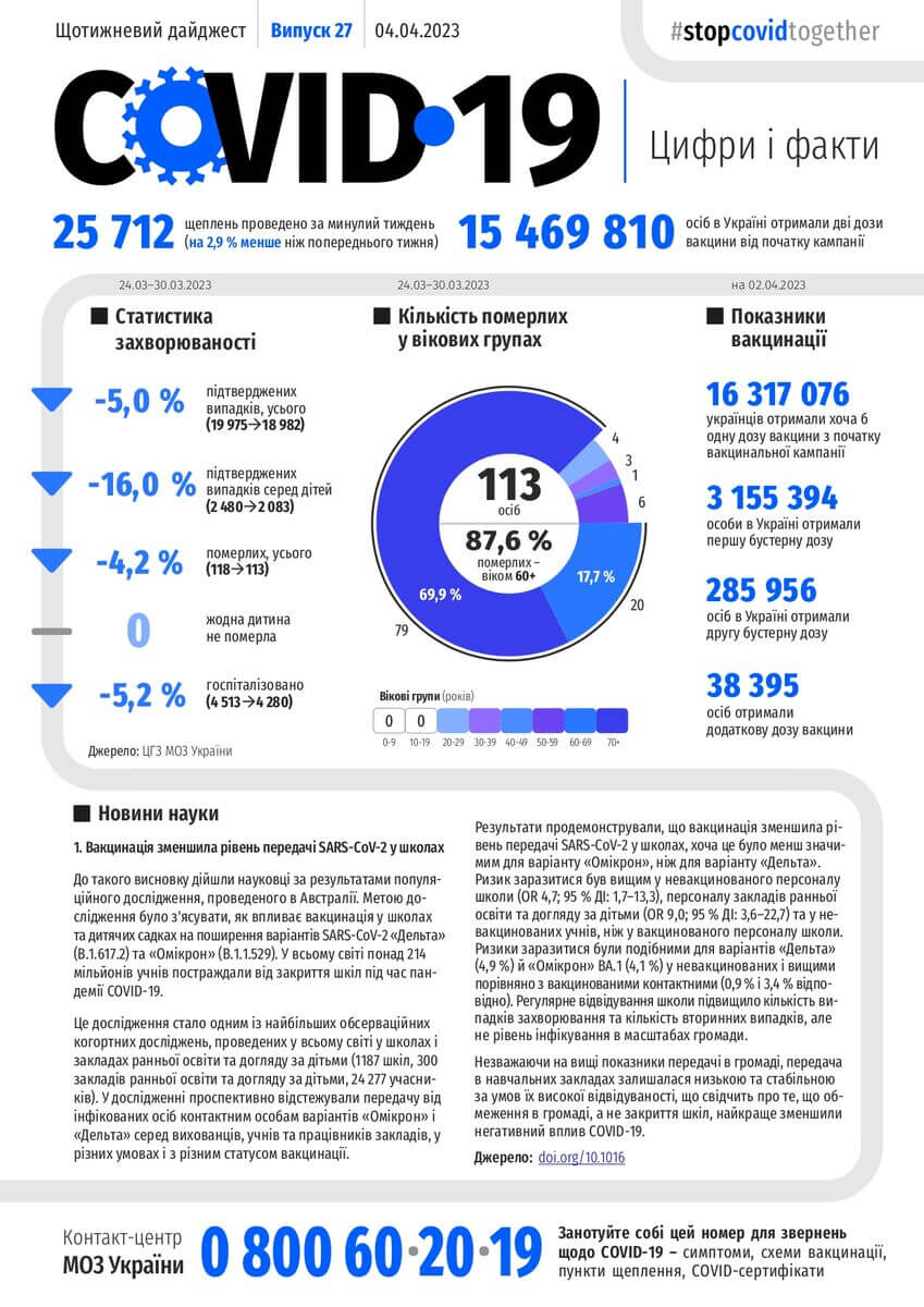 Дайджест «COVID-19. Цифри і факти» підготовлений у межах спільного зі Світовим банком проєкту МОЗ України "Поліпшення охорони здоров’я на службі у людей".