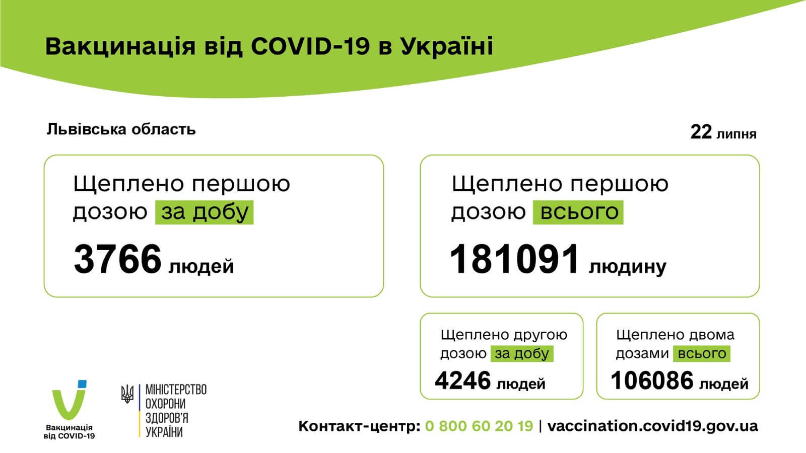 Вакцинація від COVID-19 у Львівській області за 22 липня 2021 року