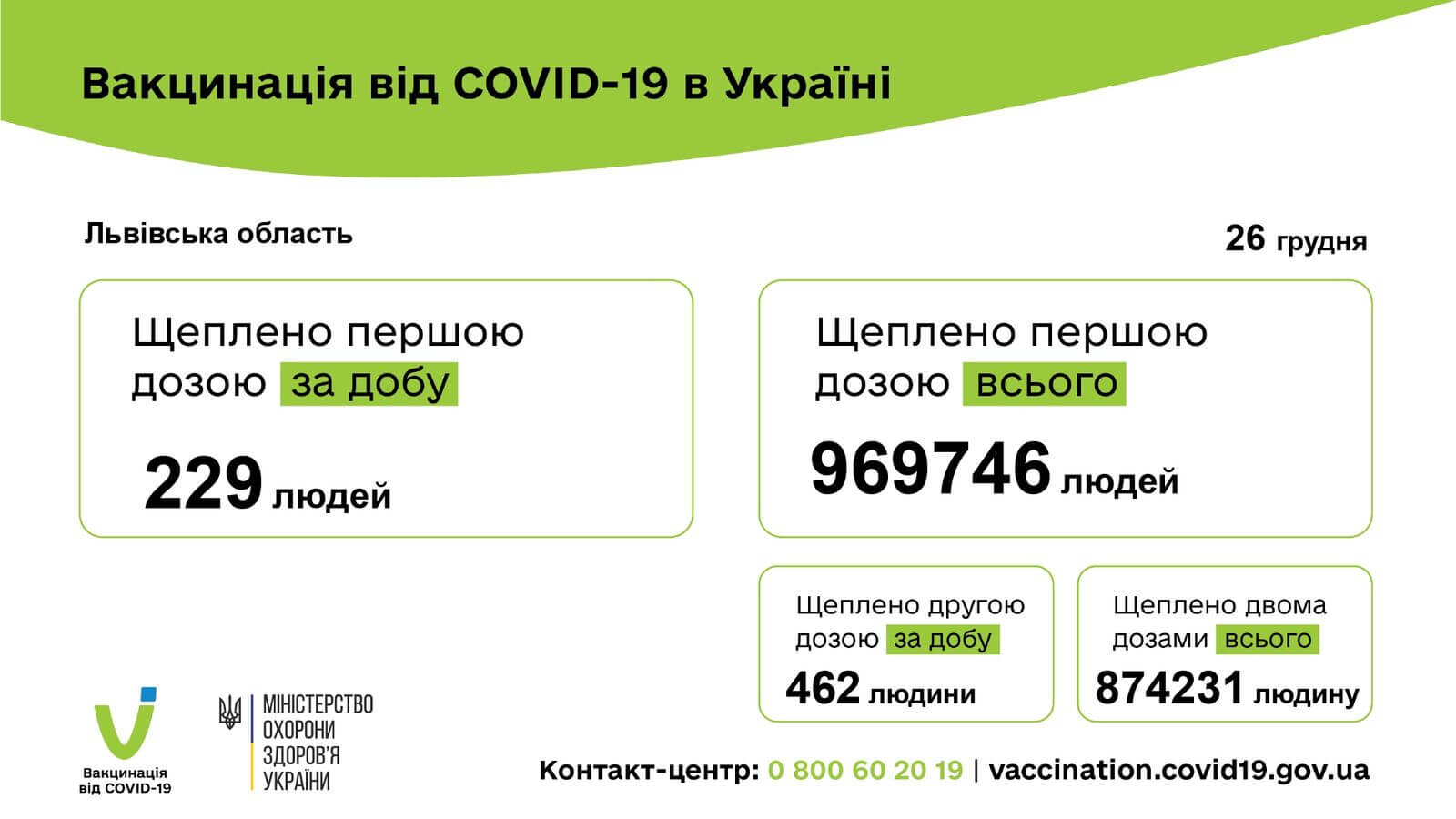 Вакцинація від COVID-19 у Львівській області за 26 грудня 2021 року