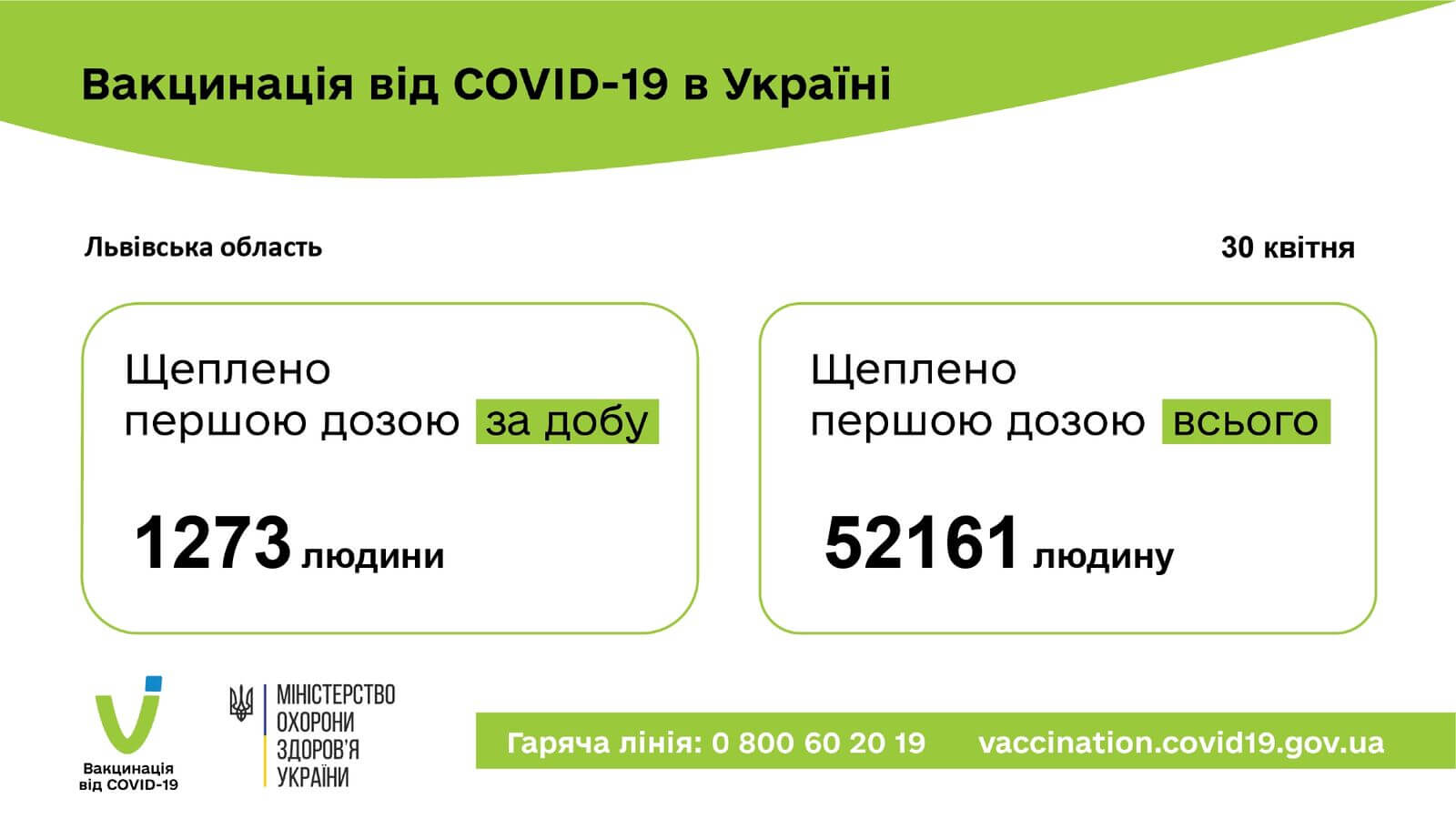 Вакцинація від COVID-19 у Львівській області за 30 квітня 2021 року