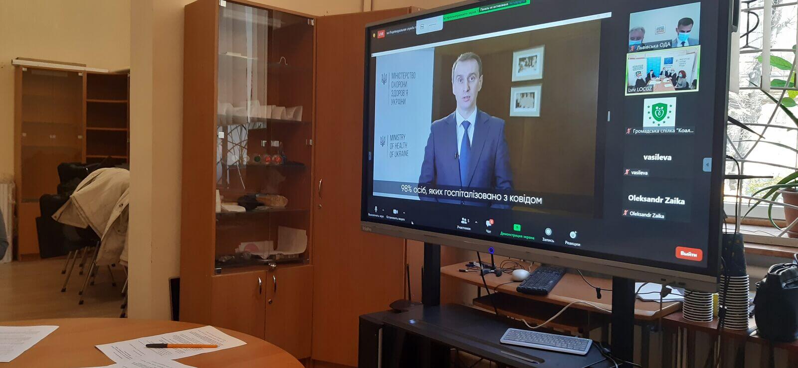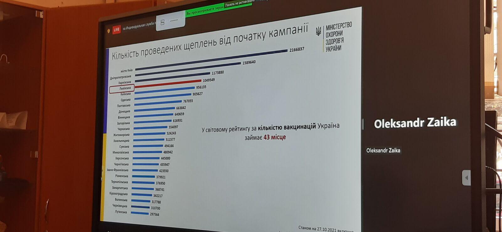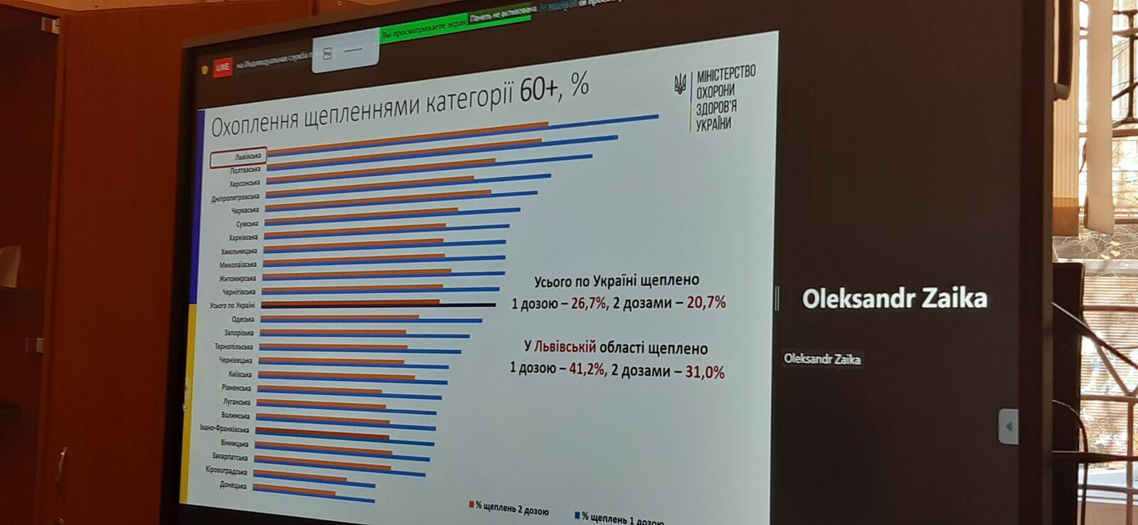 З вітальним словом виступили Міністр охорони здоров’я Віктор Ляшко та Голова Бюро ВООЗ в Україні Ярно Хабіхт (відеовиступ) Як зазначив заступник голови Львівської ОДА Іван Собко, Львівщина доклала багато зусиль для реалізації кампанії з вакцинації від ковіду.