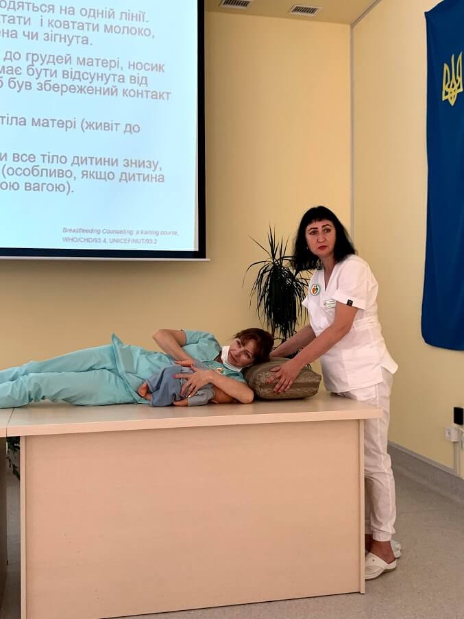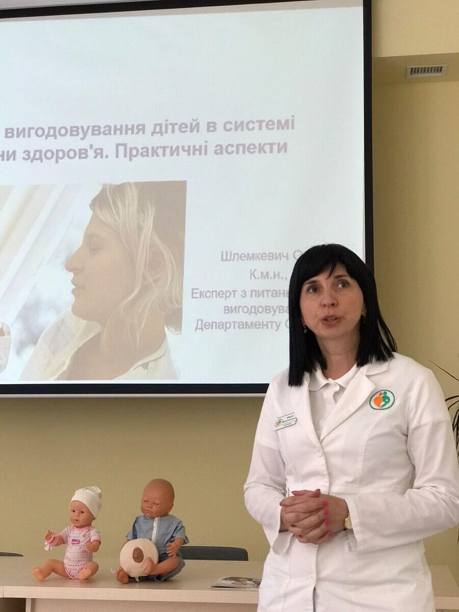 Ольга Шлемкевич, кандидат медичних наук, лікар-неонатолог Центру звернула увагу присутніх на аспектах грудного вигодовування, а саме на особливостях раннього прикладання до грудей та контакту шкірі-до-шкіри. Учасники мали змогу пройти майстер-клас на муляжах ляльок та молочної залози.