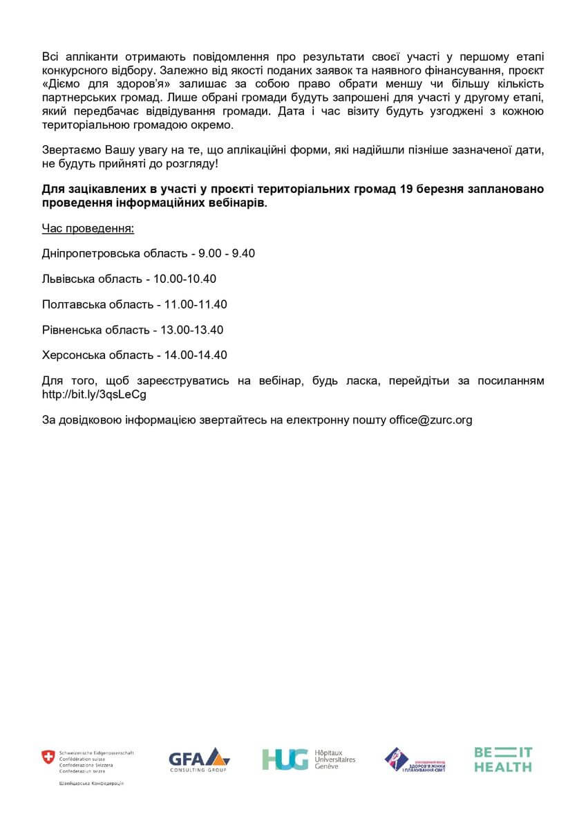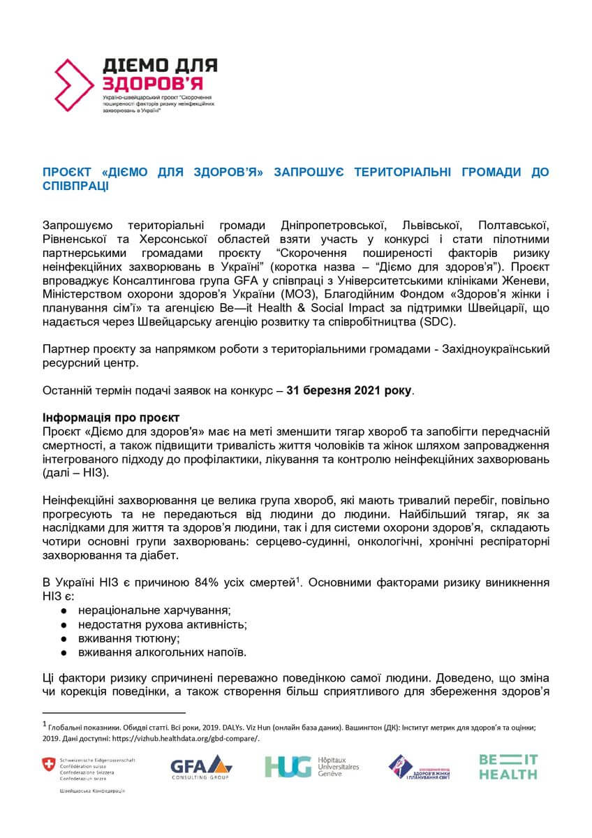 Аплікаційна форма: проєкт "Діємо для здоров'я" запрошує територіальні громади до співпраці